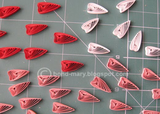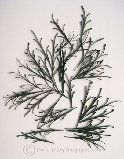 [показать]Листочки: полоски 2 мм, длина может быть любой. В моем случае - 25-26 см. Листочки сделаны по МК Лены (