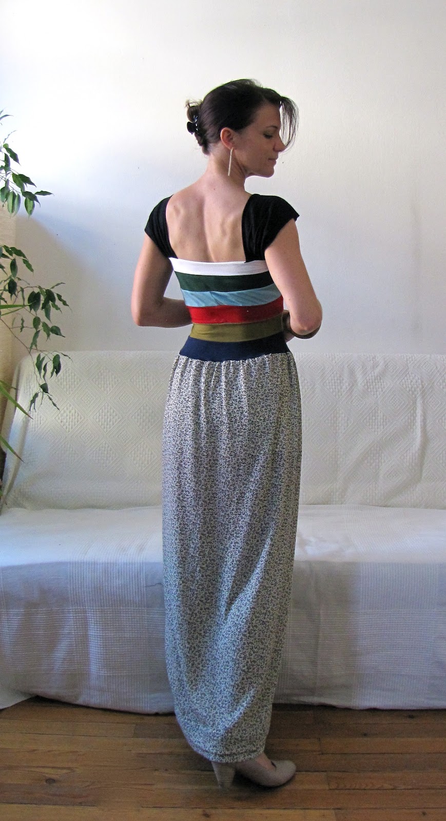 If you want a tube-top with no straps or sleeves, you are done with the top. Sew down the tag and the facing on the inside at the side seams and you have it: