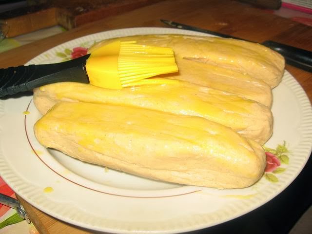 Арирм достала, сняла плёнку, смазала брусочки желтком.