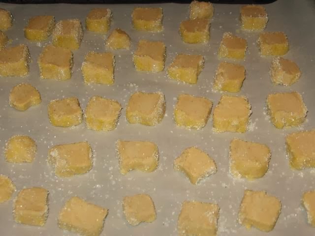 каждый брусочек нарезала на кусочки примерно 1 см толщиной.