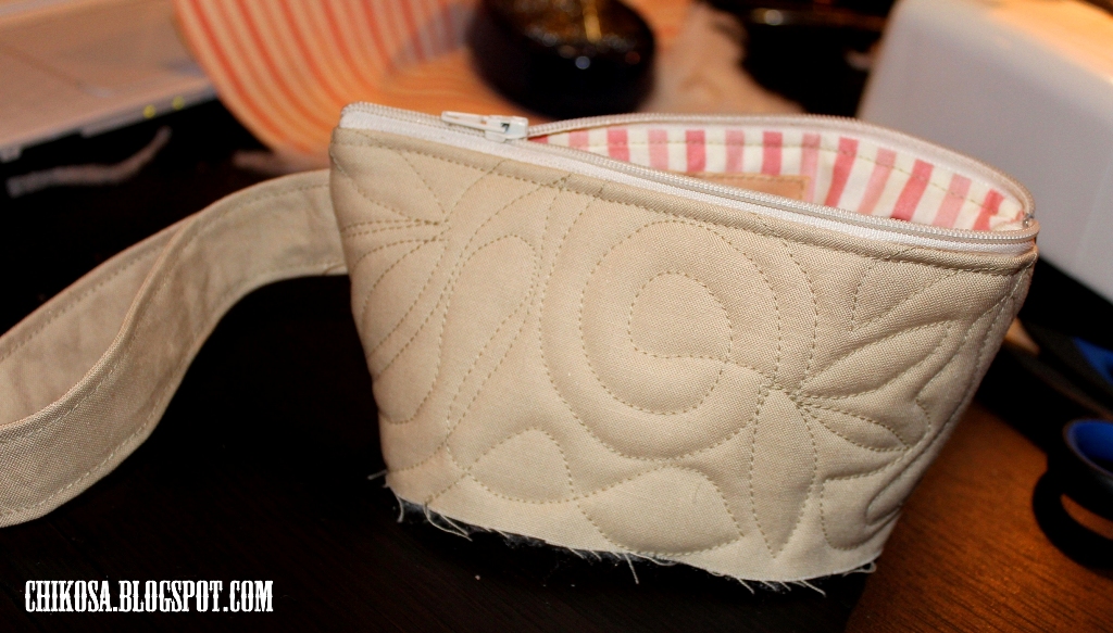 Вывернем косметичку, подогнем верхнюю часть подклада и потайным швом пришьем ее к нижней части подклада: