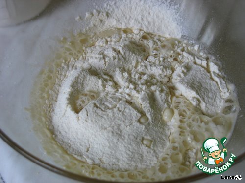 Растворить дрожжи в 8 ст.л. теплой воды.