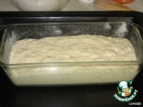 На подсыпанном мукой столе придать хлебу овальную форму, положить тесто на противень или в смазанные сл. маслом прямо угольные формы швом в низ поставить подходить пока его объем не увеличится в 2 раза, это может занять 2-5 часов.