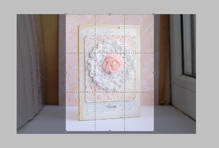 Кадрируем изображение с помощью инструмента Кадрирование (Crop). Выбрав данный инструмент, выделяем на фото область, которую хотим оставить, и кликнув по ней два раза, обрезаем лишнее.