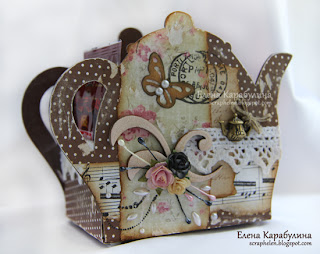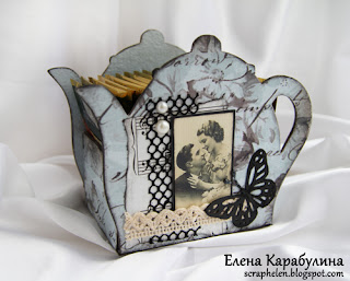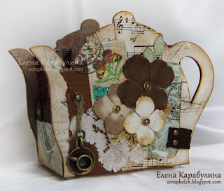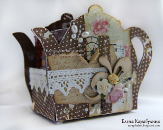 Приклеиваем скрап-бумагу с обратных сторон чайничков. Я всегда