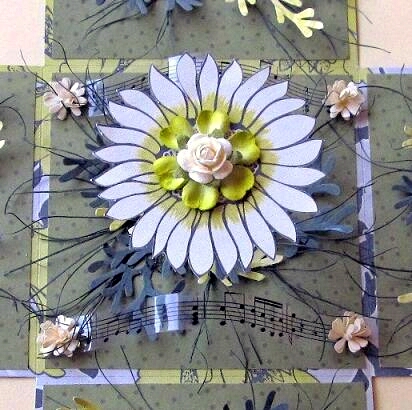 Вырезала большой главный цветок, приклеила его к основе, и сверху еще два цветка.