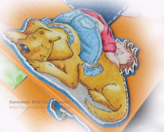 Сделан этот альбом для моей родной сестры, а точнее для ее маленького сыночка Ильи. Ему сейчас полных четыре месяца. Мне хотелось угодить обоим. Еще очень хотелось, чтобы альбом был солнечным и веселым. Вот что в результате получилось.