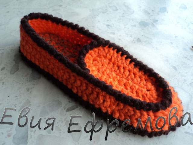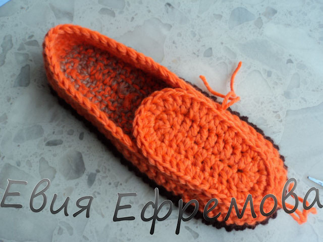 Заканчиваем третий ряд симметрично его началу с другой стороны тапочка.