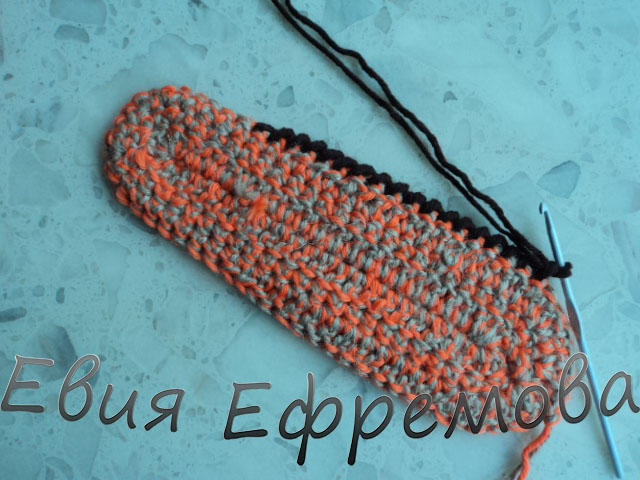 боковой и уже продолжая также вязать рачьим шагом обвязываем мысочек, закрепляя
