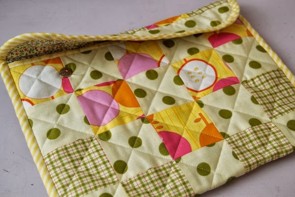 Вот например, папка для документов. Изначально сшивала просто квадраты, а в ходе работы получился такой удобный и мягенький клатчик, куда я сложила все наши с детьми полиса и прочие нужные бумажки.