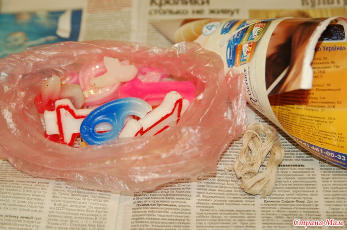 Итак, приступаем. Для начала соберите все огарки свечей, как я уже писала, цвет не меет значения. У меня было много остатков свечей от торта, вот они и пошли в ход.