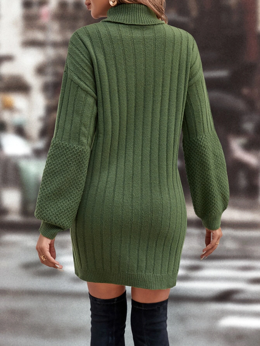Третье платье-свитер связано очень просто - спущенное плечо, воротник-гольф. Основная часть платья связана полосами из лицевой глади (примерно 6 петель), между ними - две изнаночные петли.