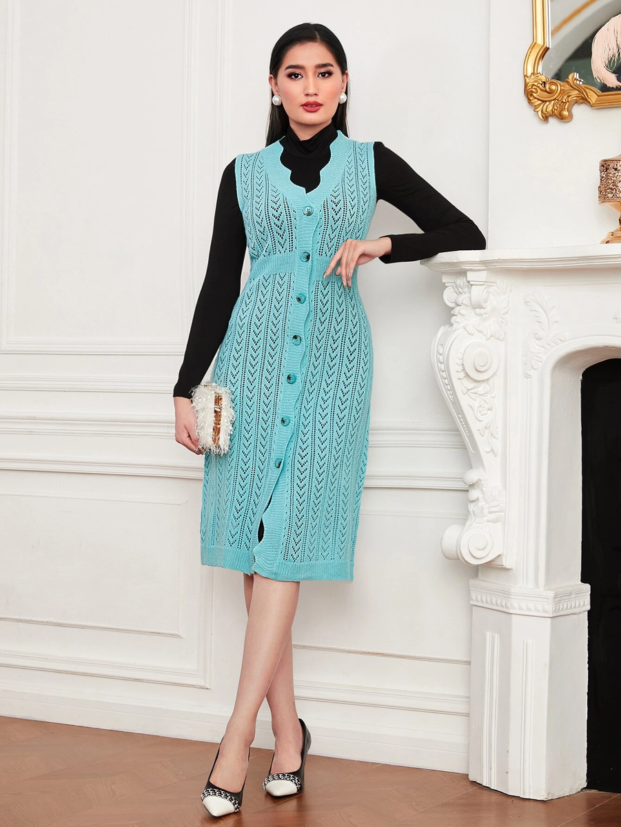 В последнее время в каталоге Shein появилось много сарафанов. Называются они там либо кардиган без рукавов, либо платье-свитер без рукавов, либо длинный жилет. Но мы-то знаем, что это обычные сарафаны, и они возвращаются в моду, в стиле 70-хх годов (или я ошибаюсь по времени? Может, это были 60-е годы, кто помнит или знает?).