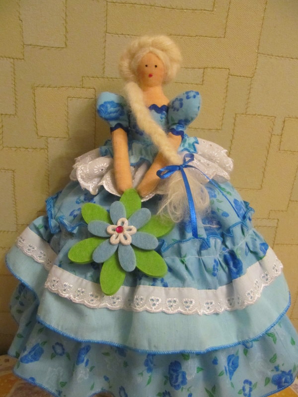 Связала грелку на чайник в подарок дочери, идею увидела в инете. На самом деле нитки не синие, а фиолетовые, цвет почему-то исказился.