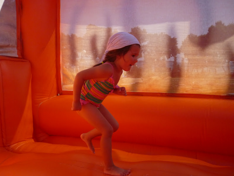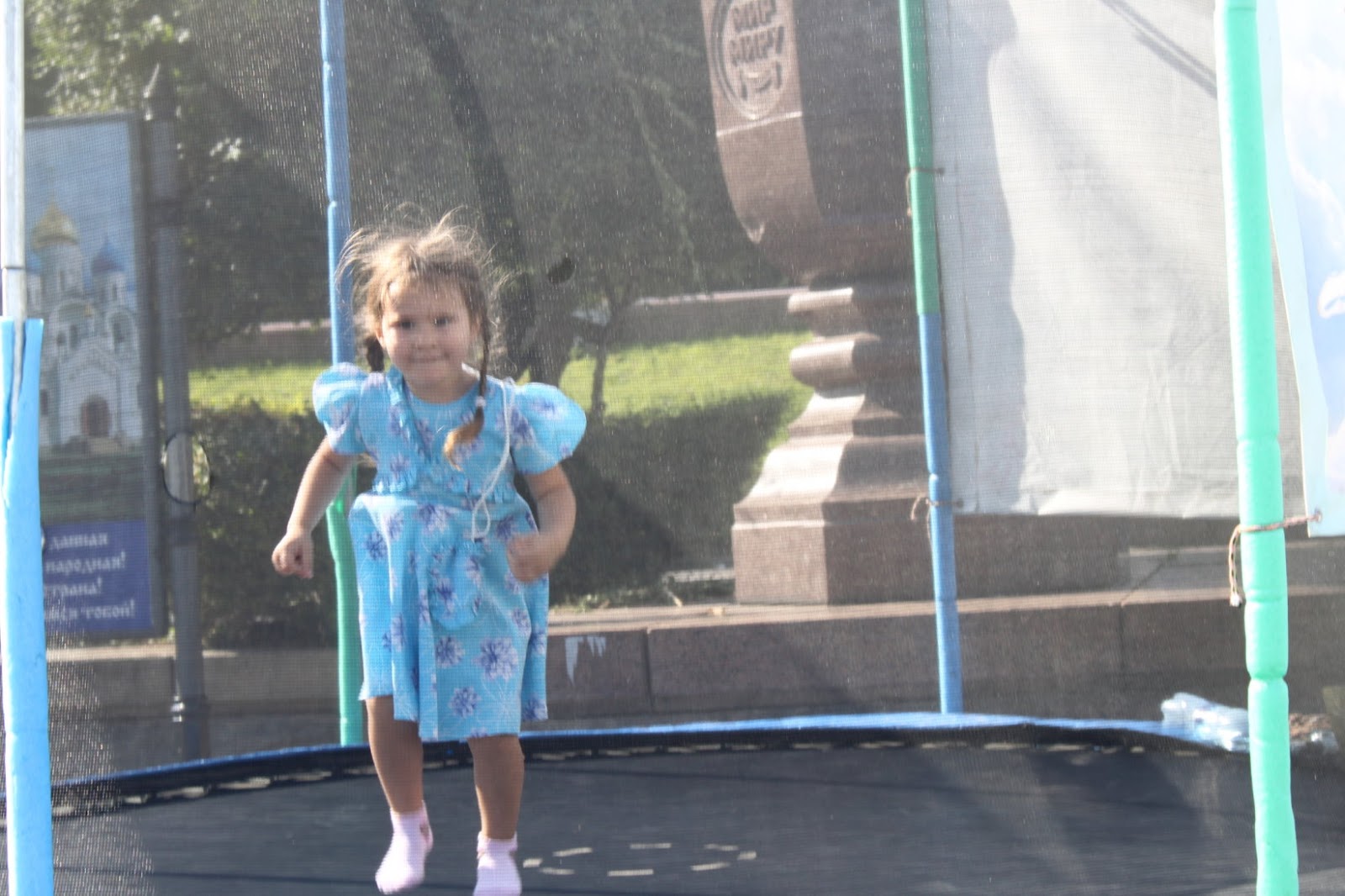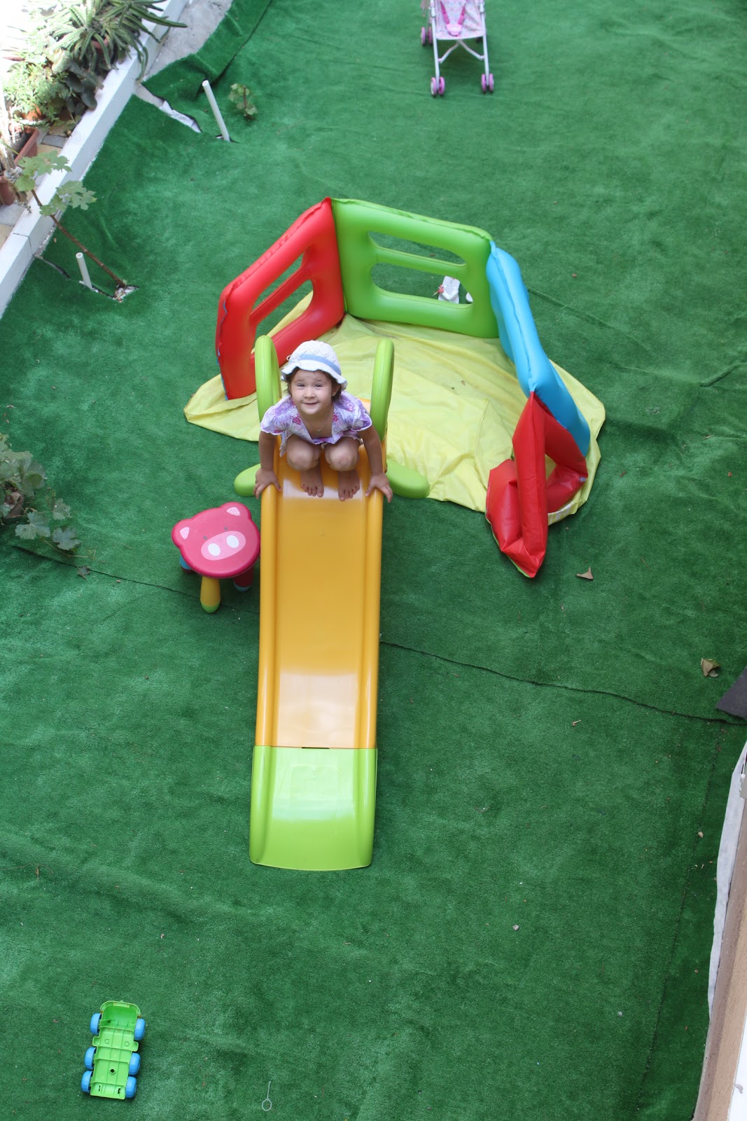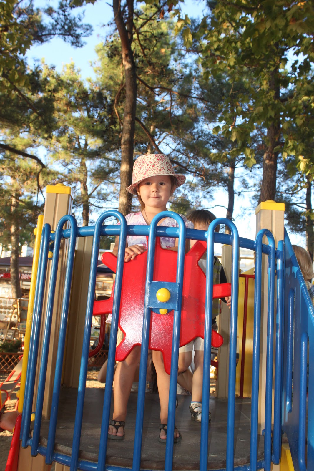 Мелкая играла в лягушатнике и прыгала на батуте, каталась на мини-горках.