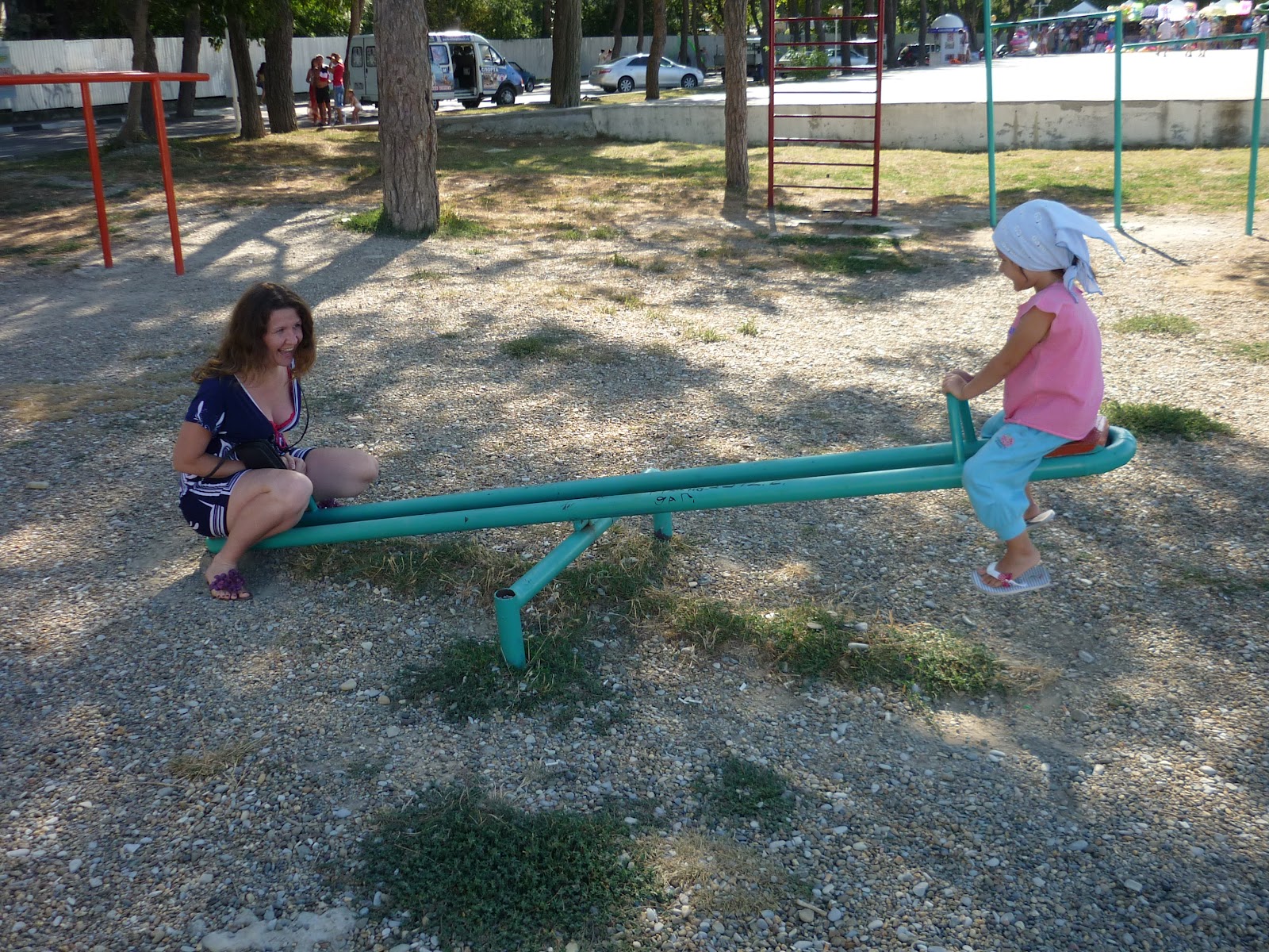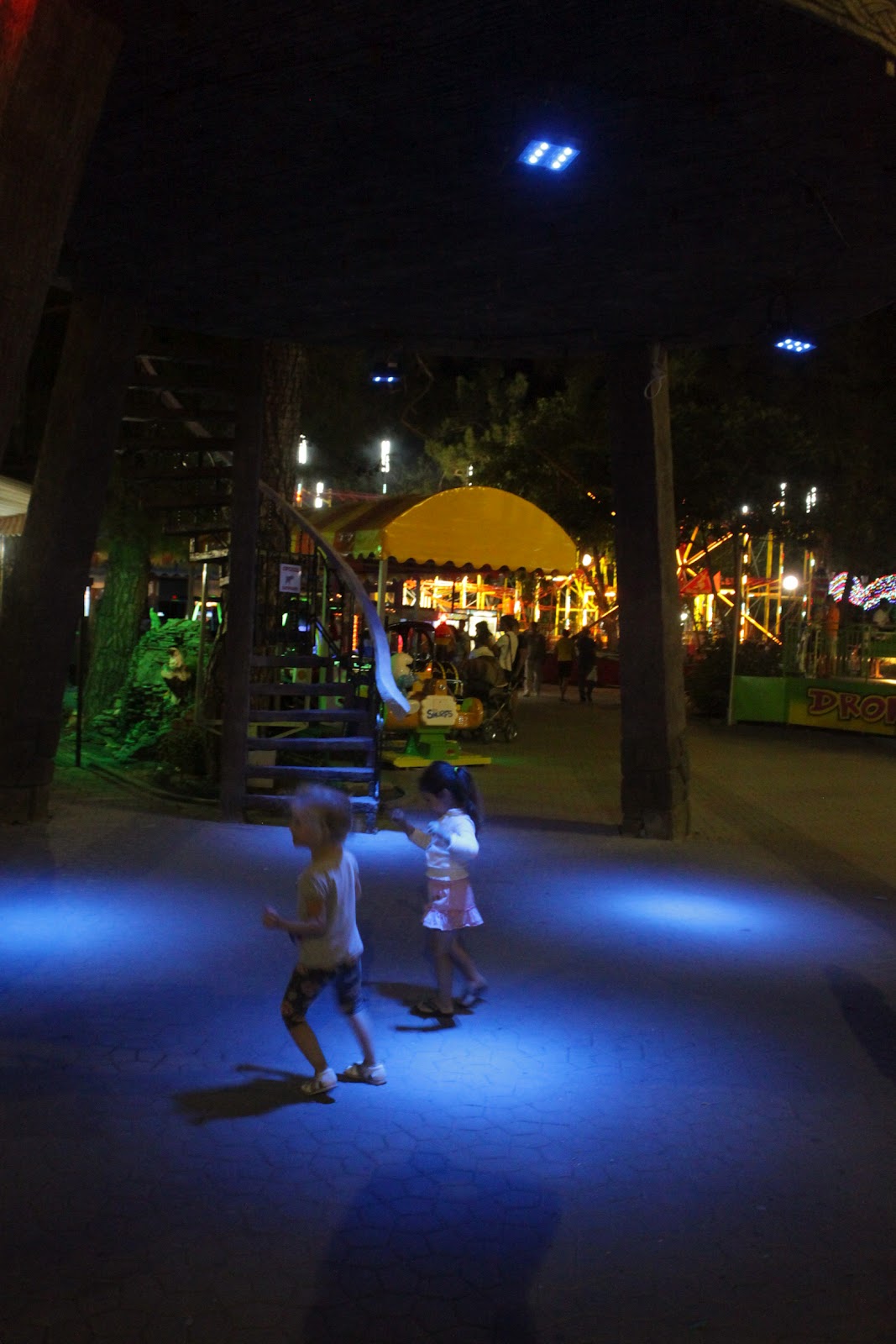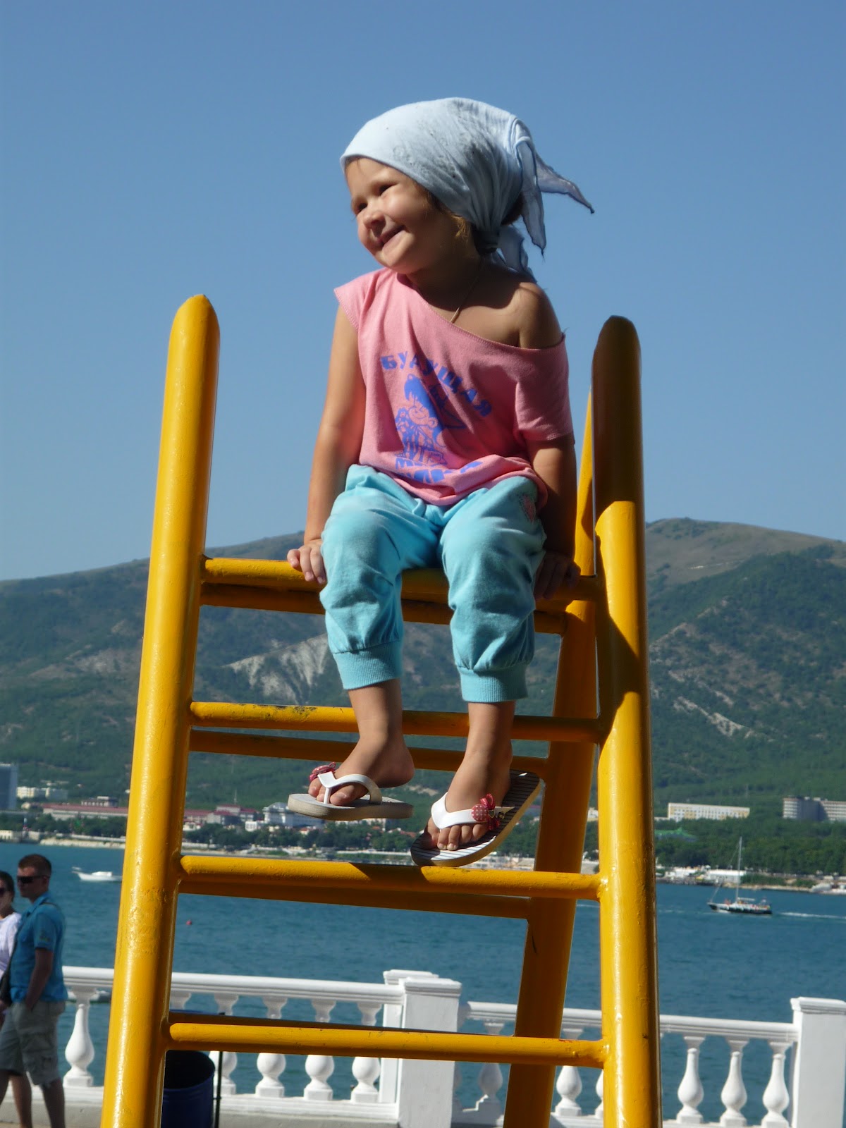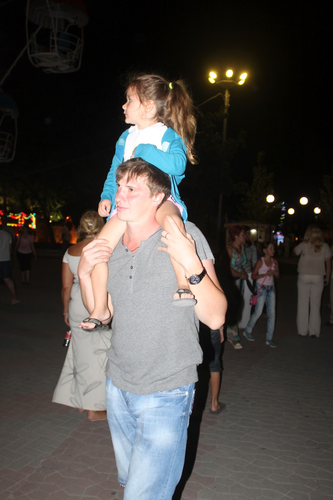 Вот, например, ездили в Архипо-Осиповский дельфинарий. Тут пока ждали начала представления ходили на аттракционы. Мелкая оторвалась по полной. После 2-х часов ее отрыва, забрали маленького чертёнка с взлохмаченными волосами и чумазой мордашкой!