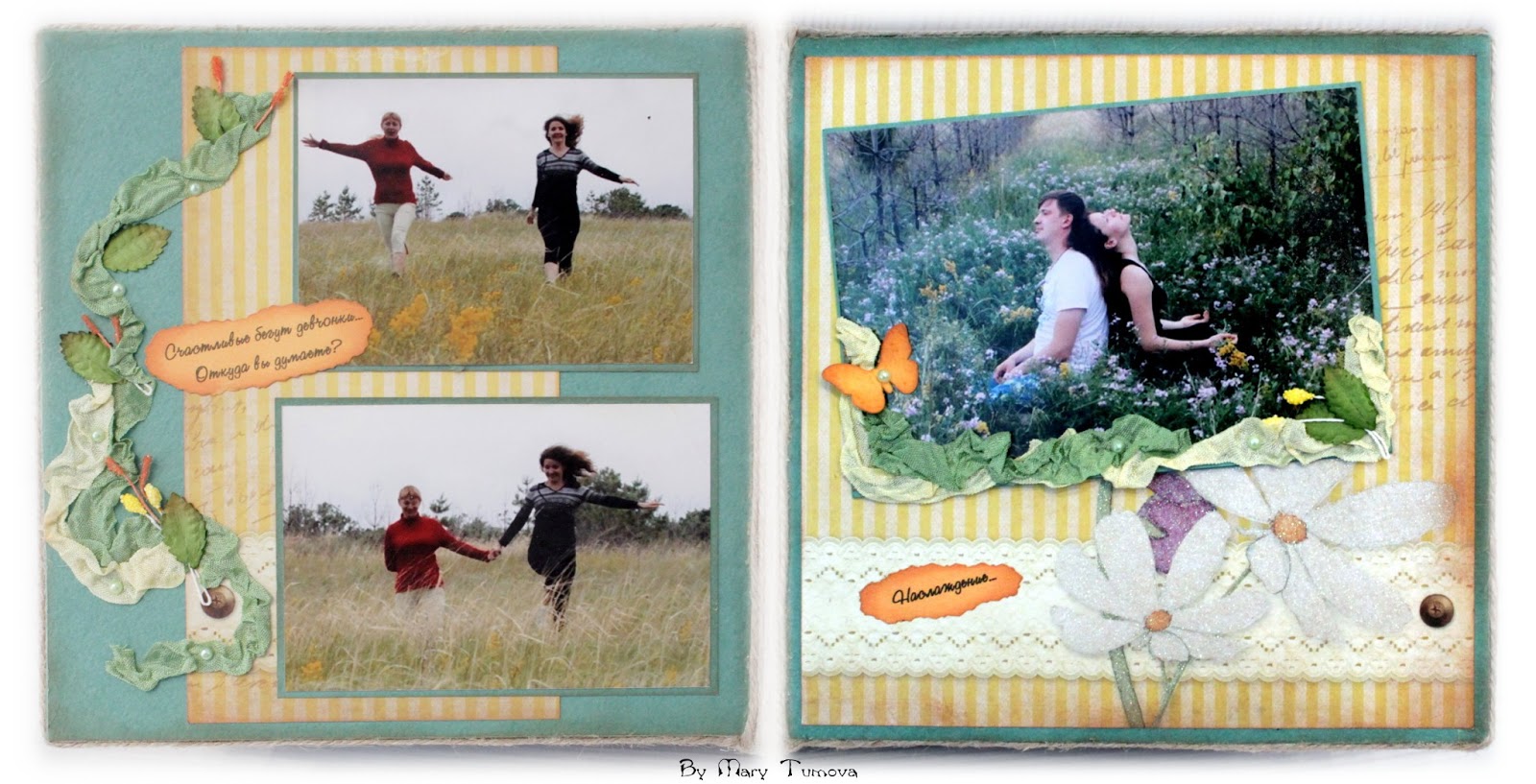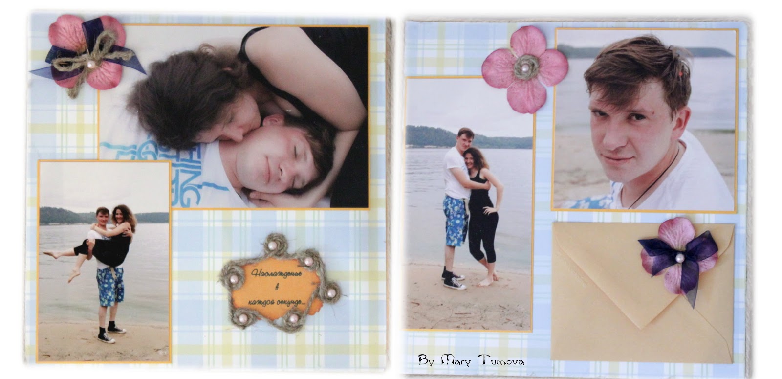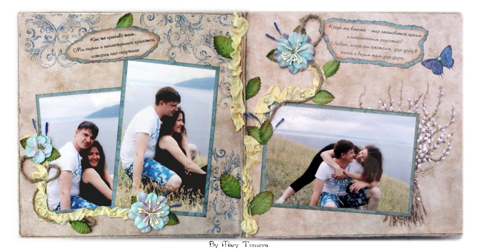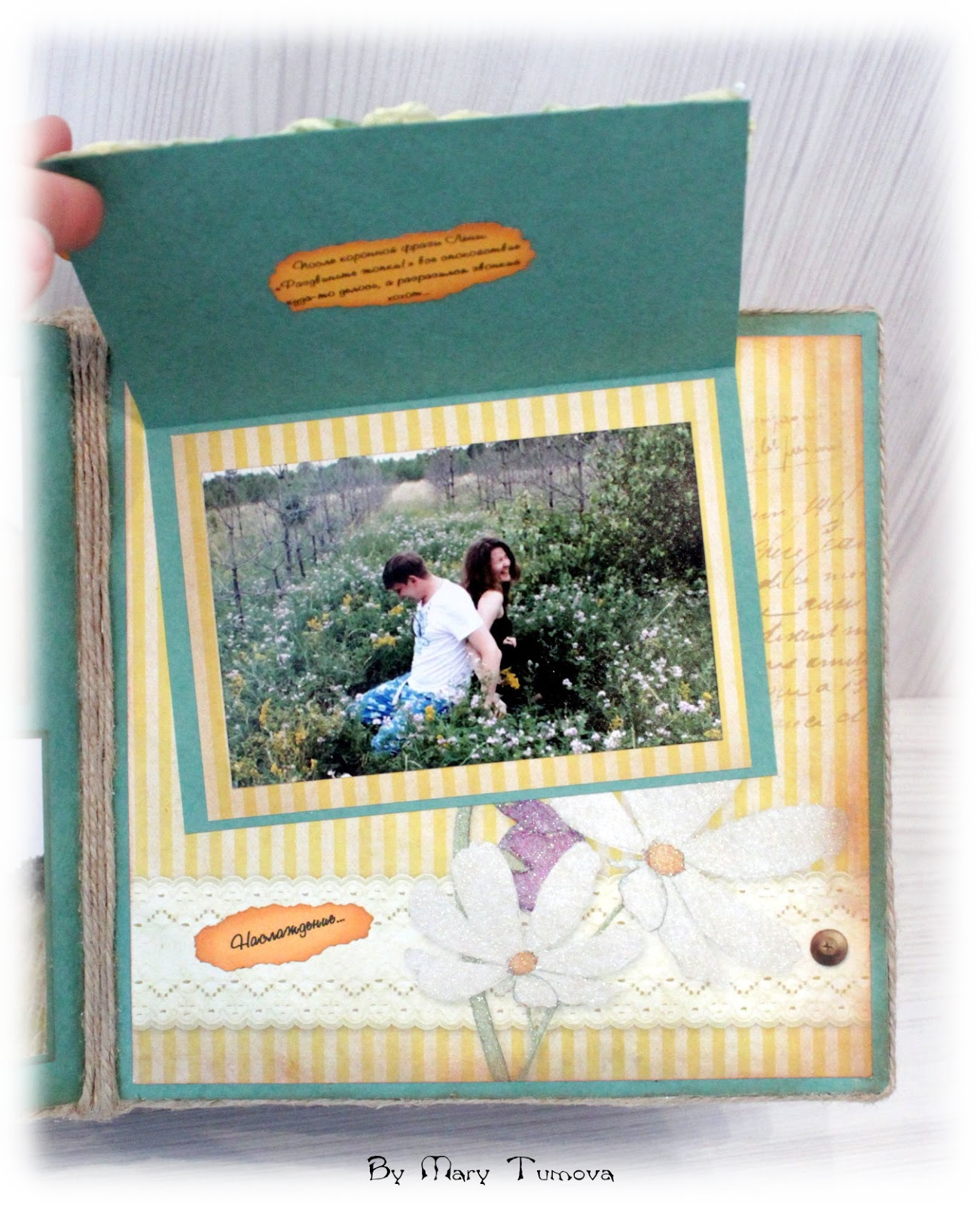 Марусь, я сплошное наслаждение испытывала, когда смотрела на Вас! Альбом очень удачный. Какая красивая бумага, идеально подобрана цветовая гамма к фотографиям, столько интересных деталей. Очень понравилось окаймление каждой странички жгутом - создает эфект 3D