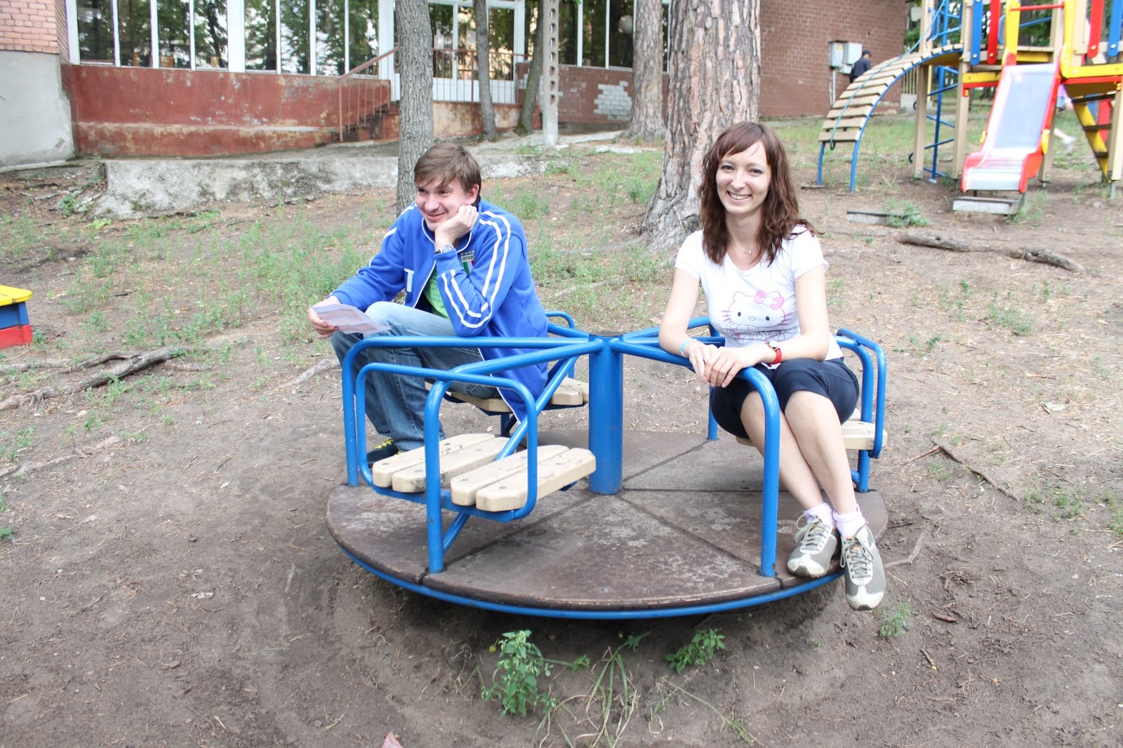 Иришка и Серега на качелях