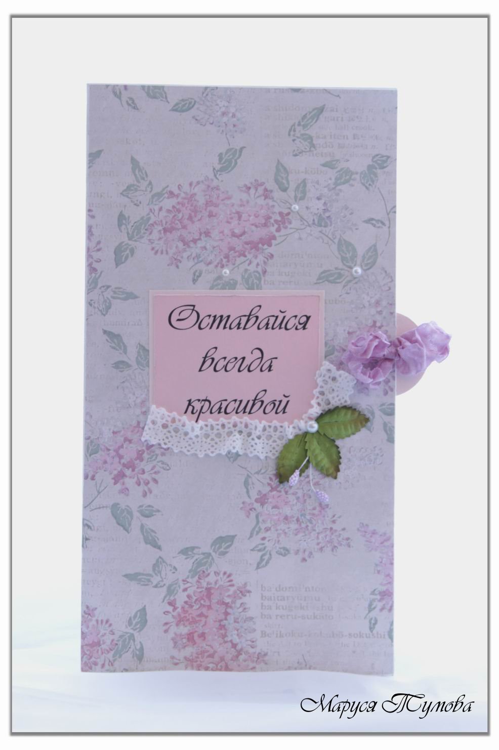 Каждая женщина, прежде всего женщина. И каждой из нас хочется прекрасно выглядеть. Следующим подарком Руслана был сертификат в SPA-салон. Сертификат находился в стандартном конверте, которые легко вмещался в такую вот открытку-коробочку с надписью "Оставайся всегда красивой".