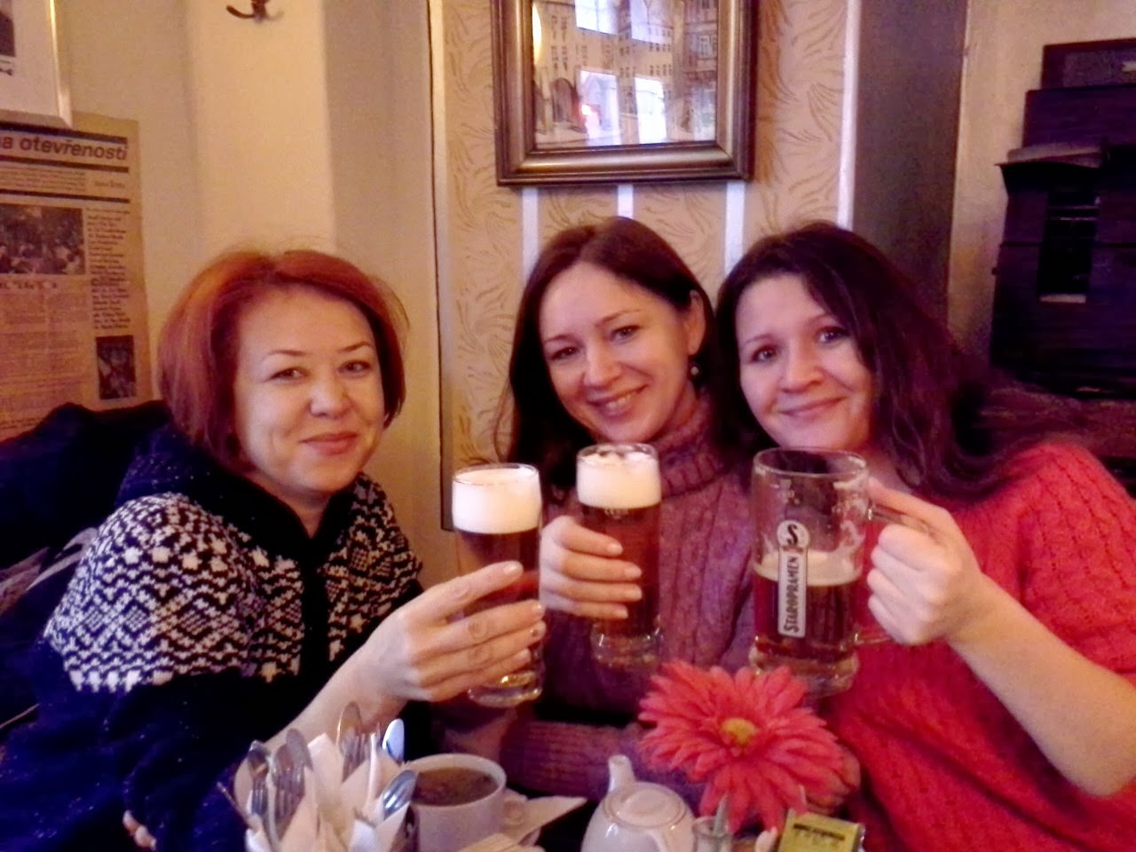 Это я... в руках у меня Сережкина кружка т.к. странно приехать в Чехию и не попить пиво, хоть я и человек который вообще не любит и не переносит алкогольные напитки - заценила какое у них вкусное и приятное пиво.