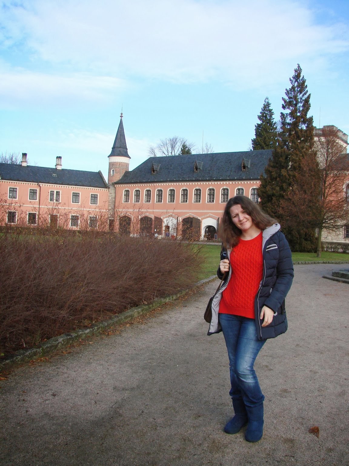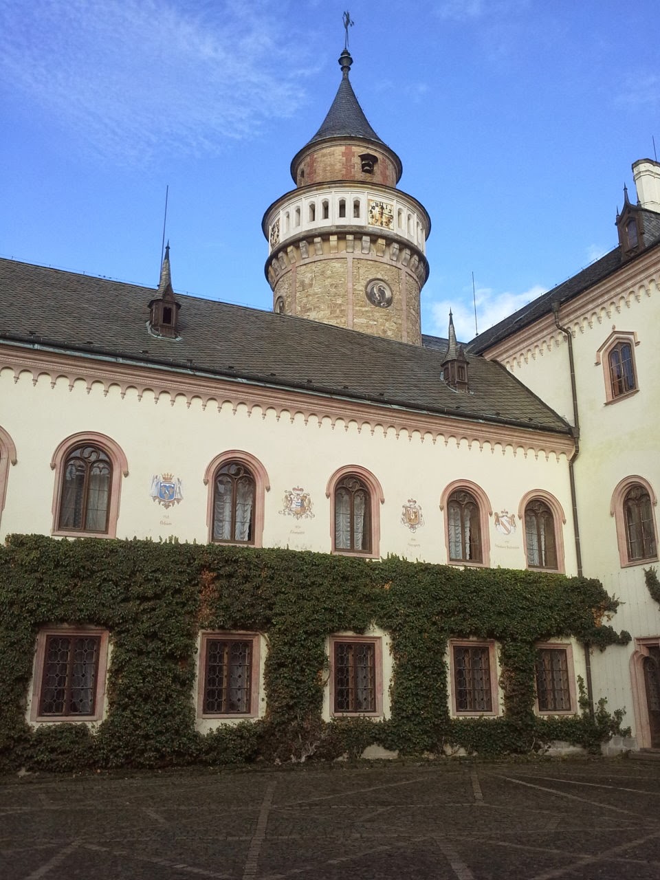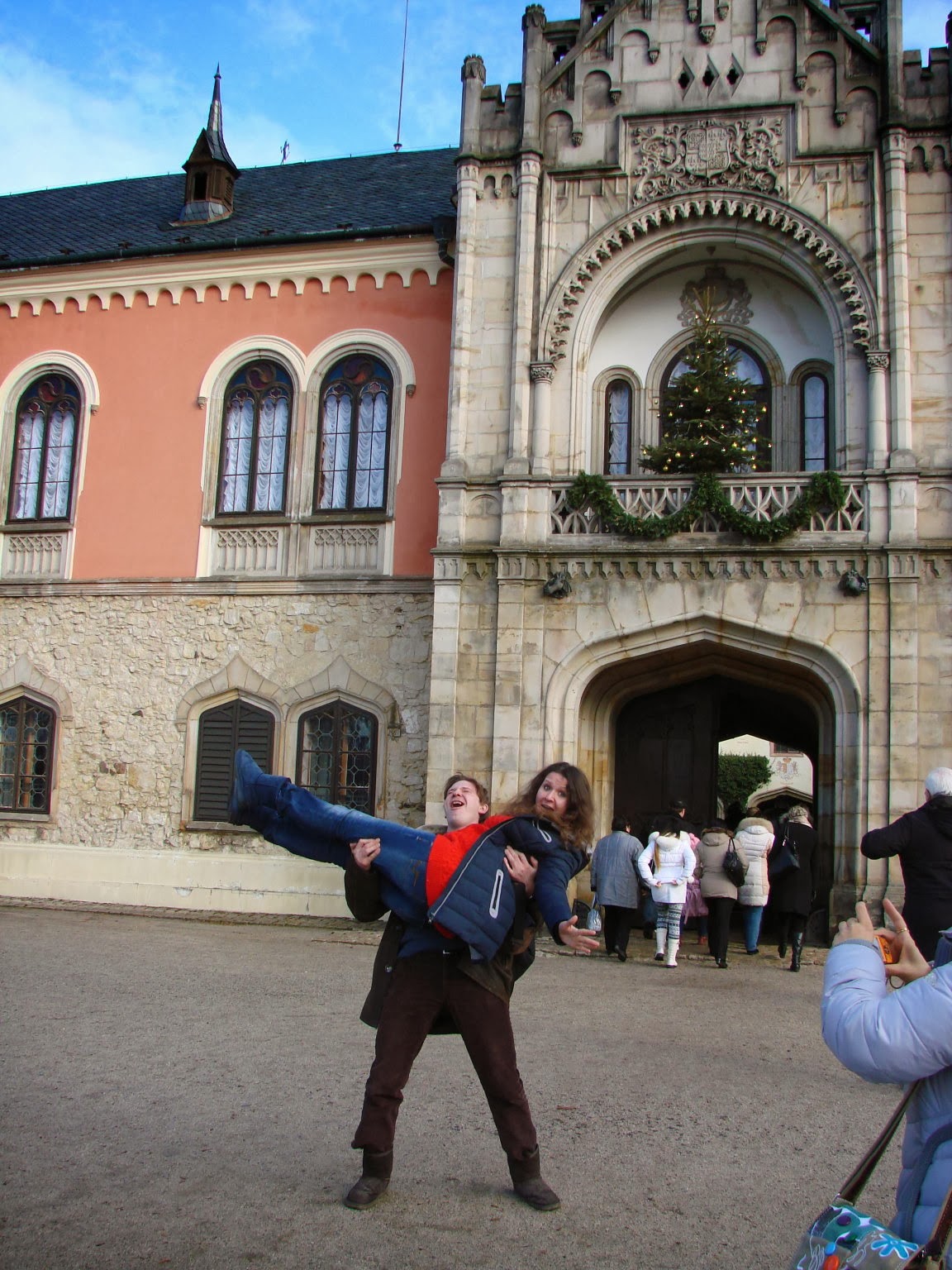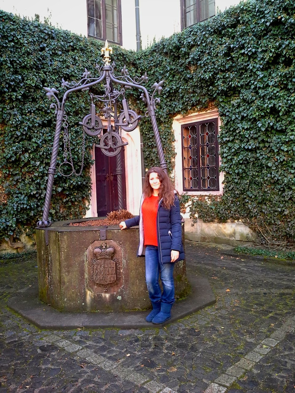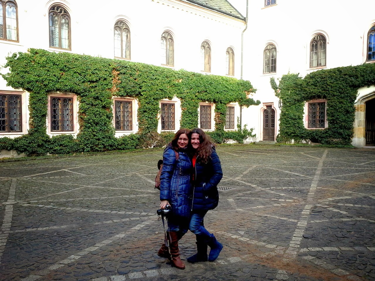 Это мы с Леной во внутреннем дворике. Скоро придет очень милая пани и покажет нам замок изнутри. Там даже своя часовня есть и иногда там проходят венчания и службы. А так же прекрасная библиотека.