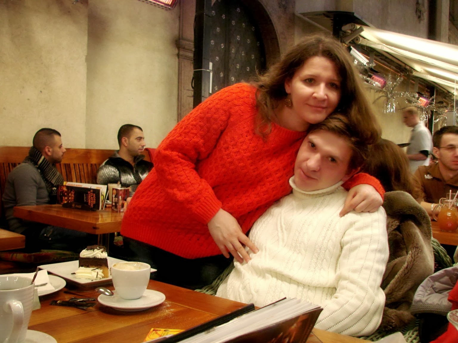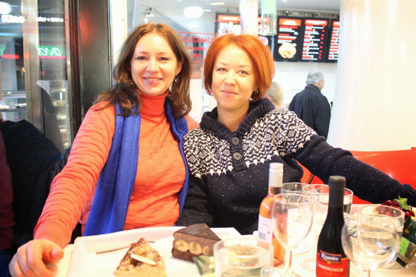 После прогулки мы зашли и покушали всяких вкусностей. (В это кафе даже стояли в очереди)