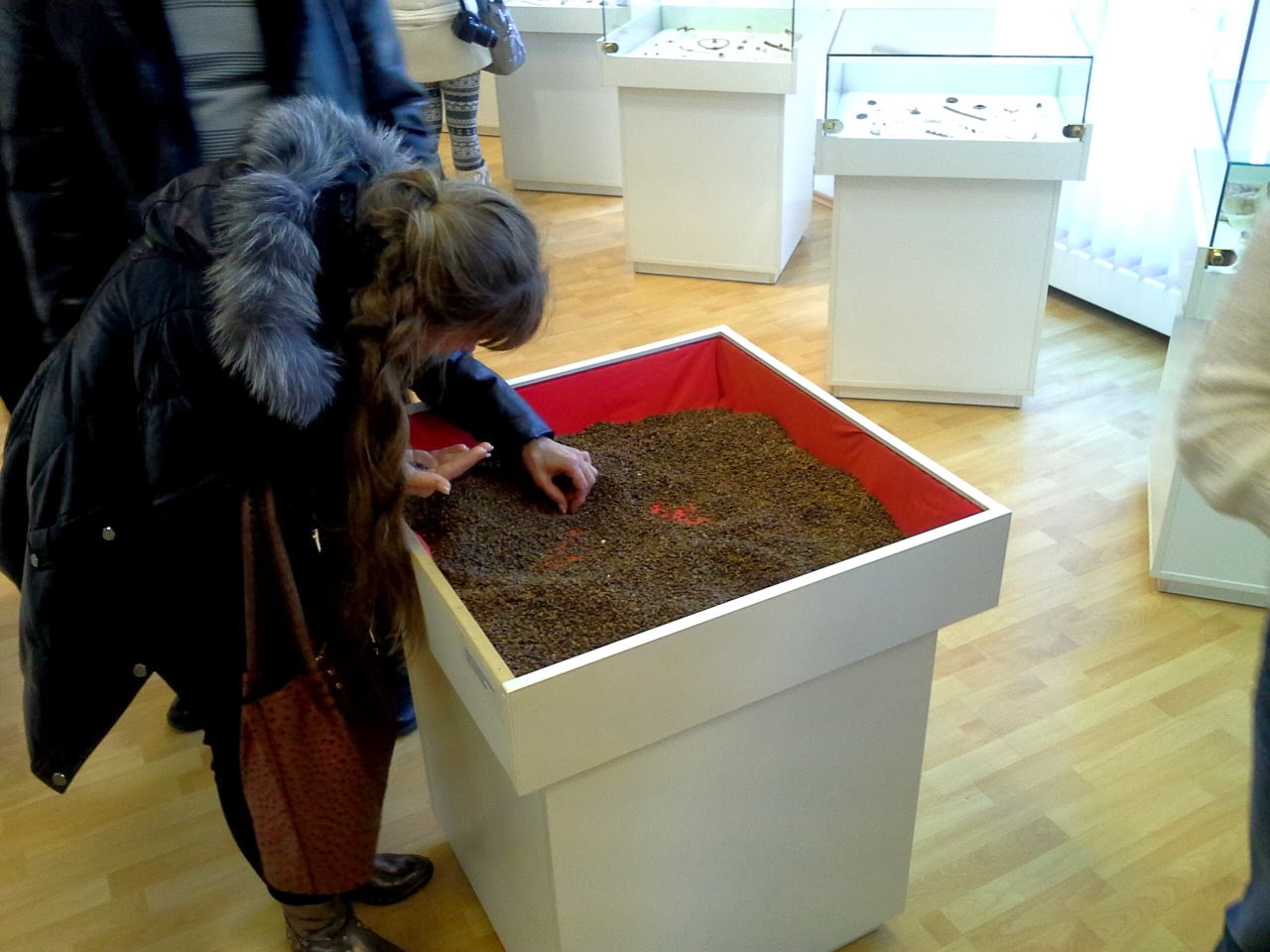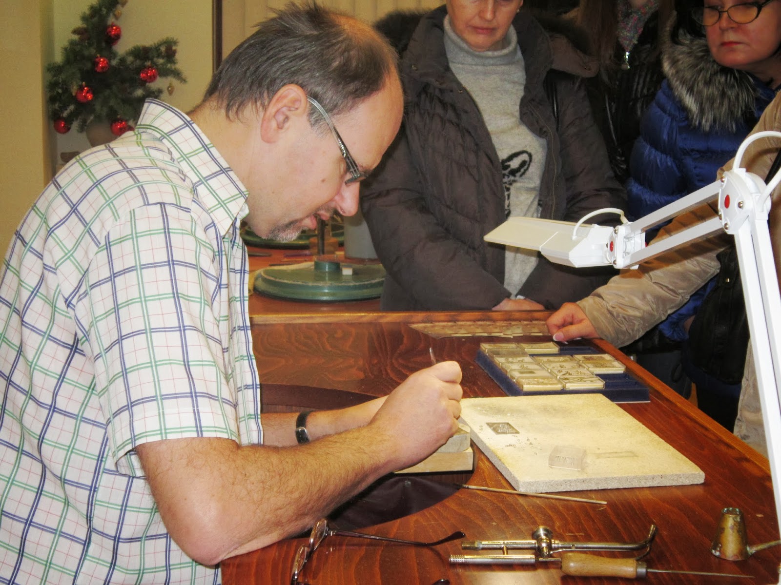Это пан (по-моему Пётр), он рассказывал, как добываются и показывал, как оформляются и обрабатываются камни для украшений.