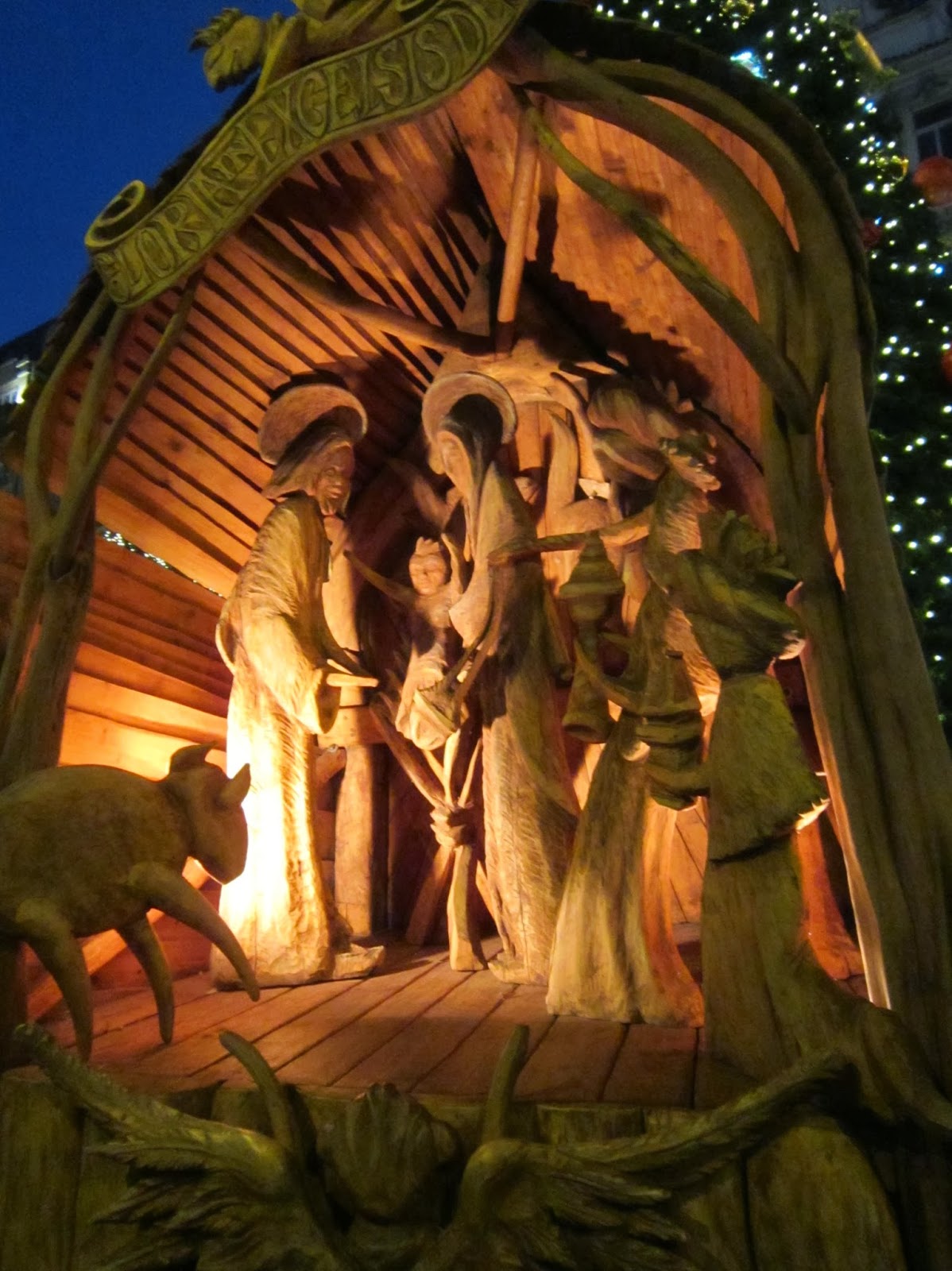 Площадь украшала вот такая рождественская композиция из дерева.