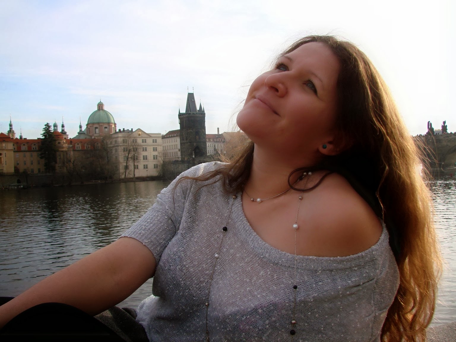 На заднем фоне знаменитый Карлов Мост.... Это я! И представьте 25 декабря!!!! АААААААА!!! И мне тепло.