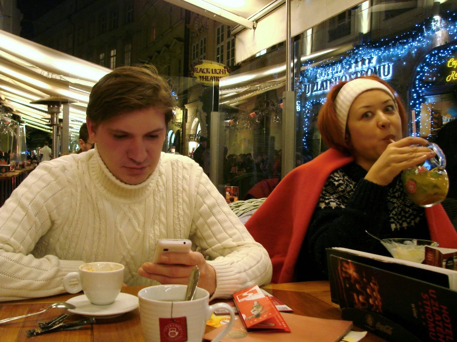 Вечером в Праге мы коротали время в уличном кафе, ожидая начала концерта классической музыки в одном из Костелов.