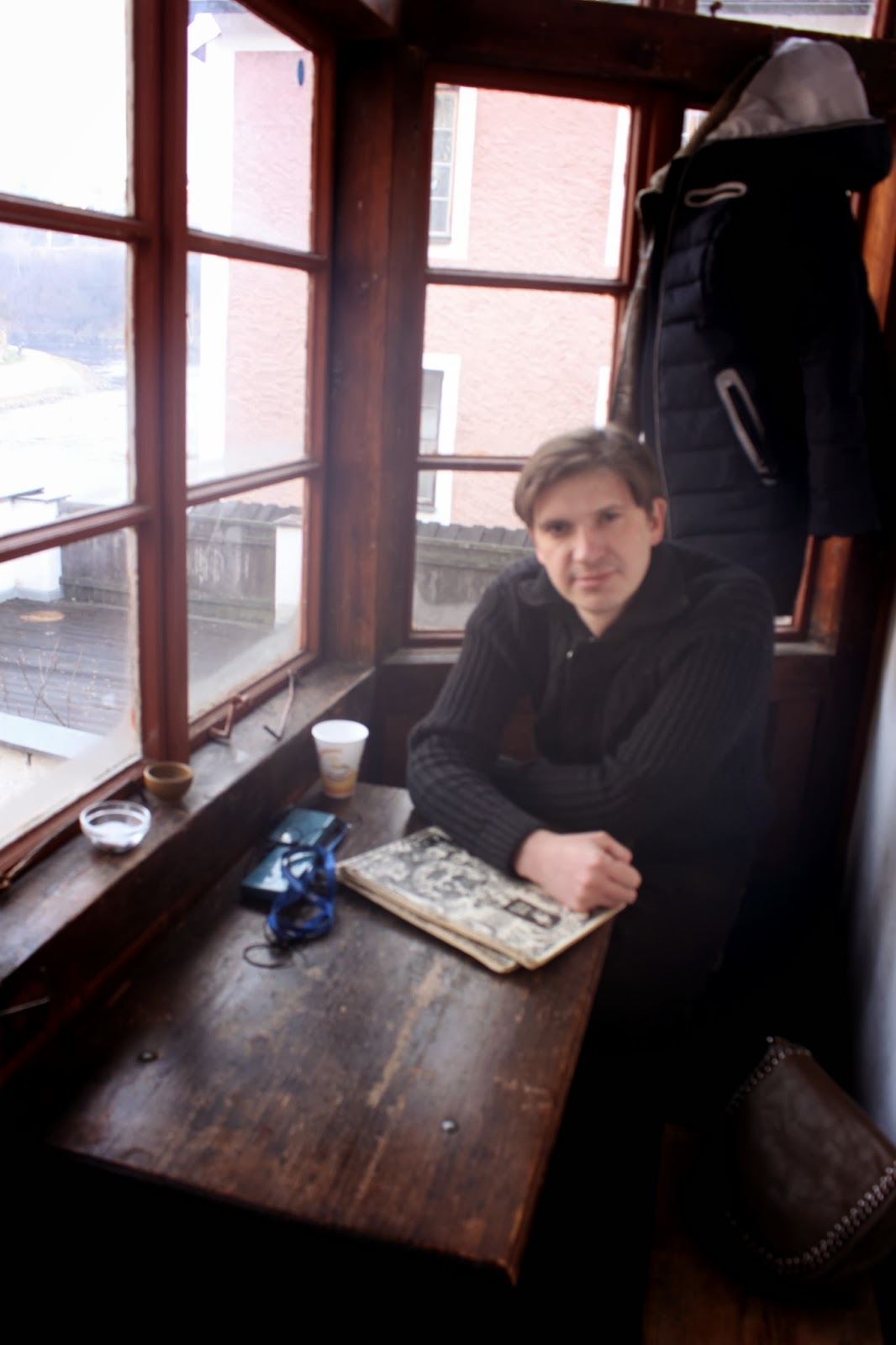А это мы зашли с Сережкой в кафе "У двух Марий" - такое уютное, старинное с скрипящими лестницами (все как я люблю) и ели очень вкусную национальную еду. Нам досталось очень красивое "козырное" место с видом на замок и я была просто счастлива, ощущая себя частью истории.