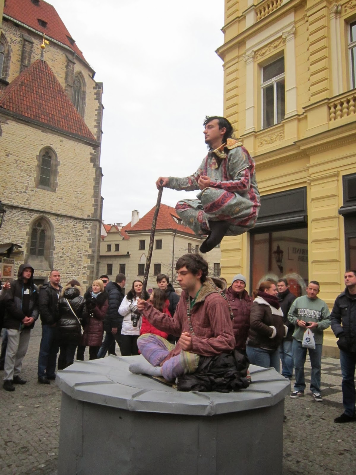 На улицах развлекают народ по-разному. Вот, например, парящие в воздухе люди))