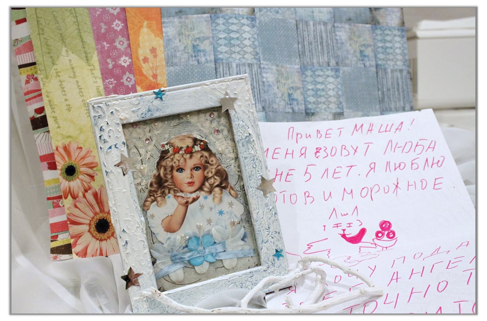 В нем были чудесные листы бумаги, замечательный ангел-хранитель и конечно же письмо, по настоящему детское и радостное.
