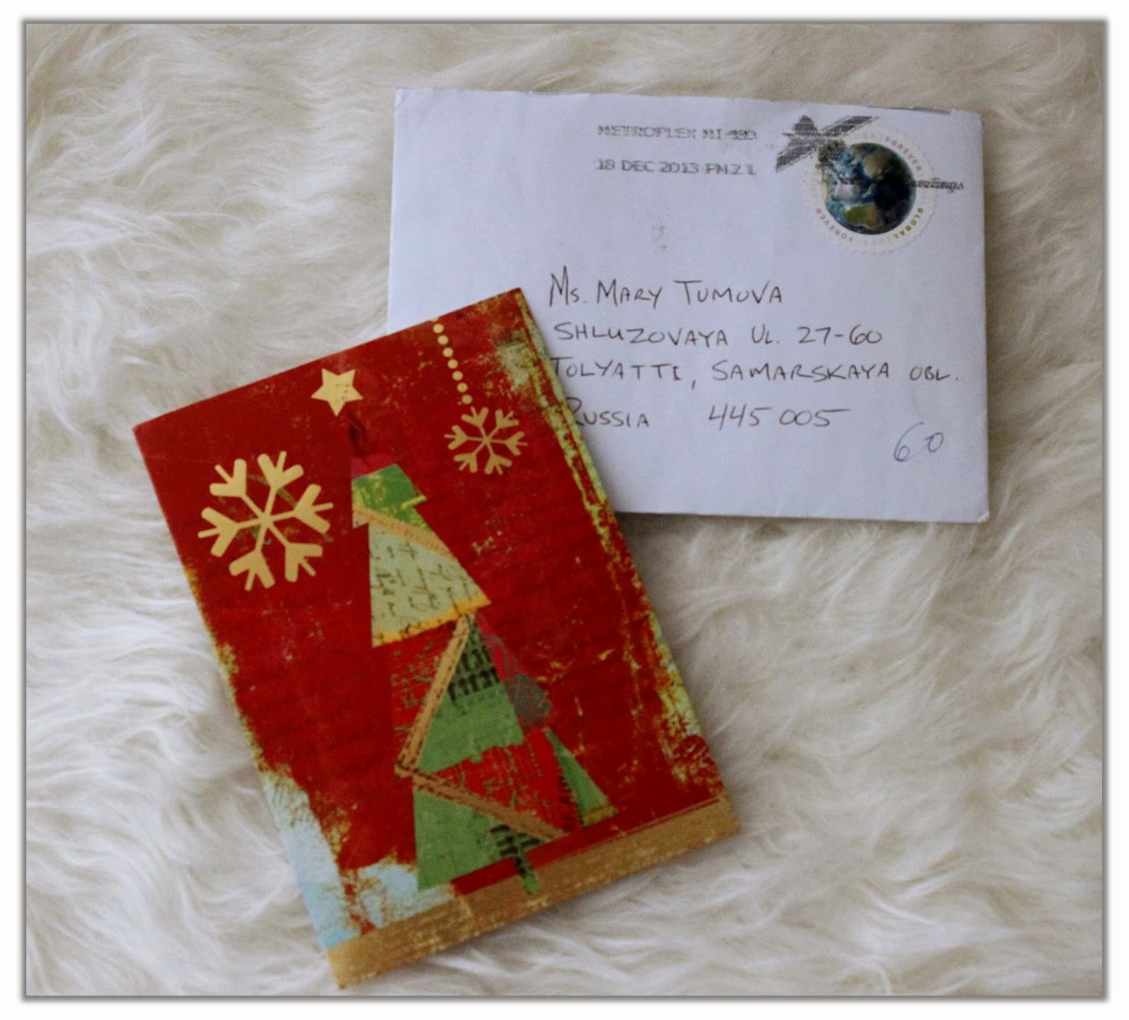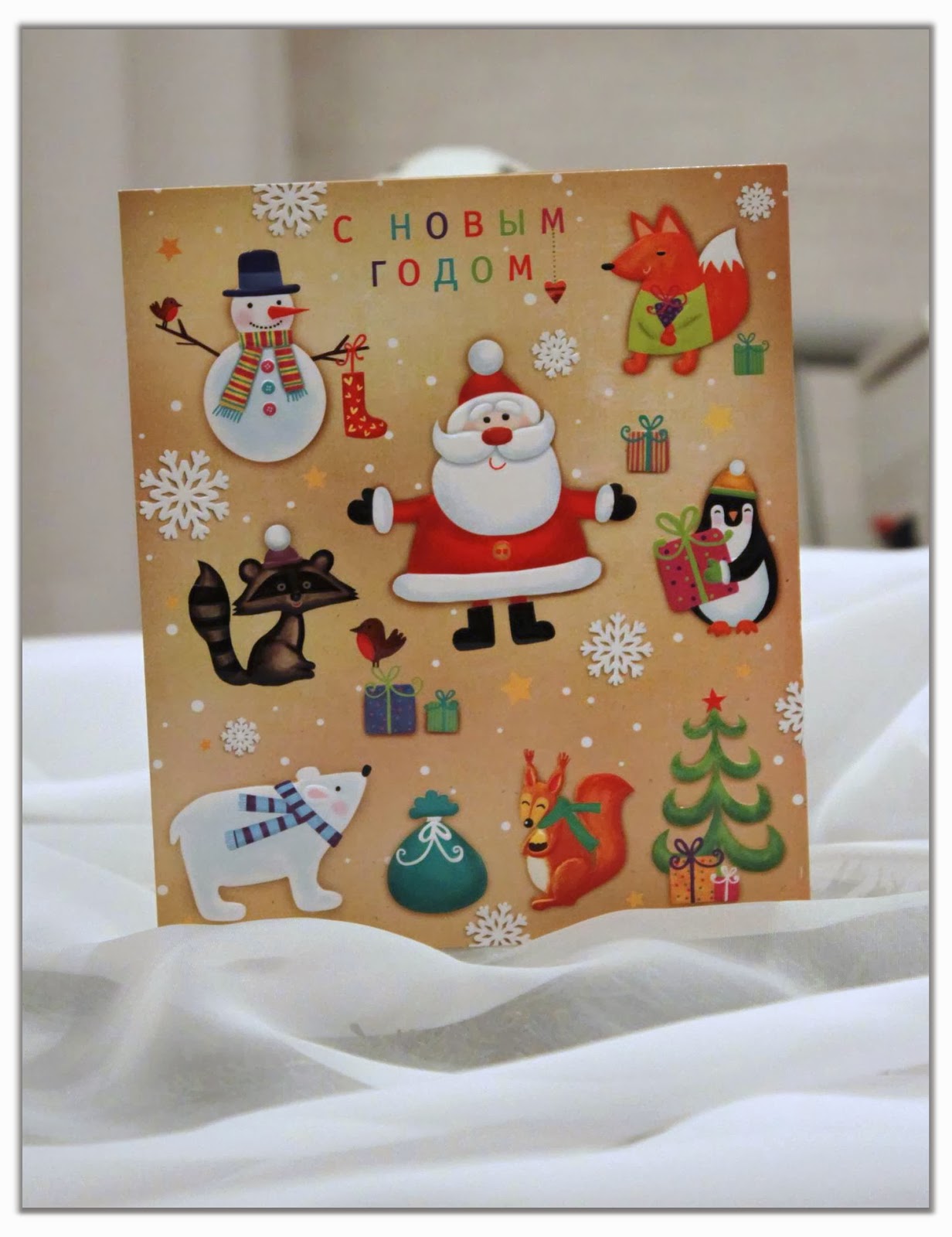 А эту открыточку мне прислала одна замечательная женщина Лена, она когда-то была моим координатором, хоть это и в прошлом, но приятное ощущение от общения осталось и по сей день. И каждый год к новому году мы присылаем друг другу открытки.