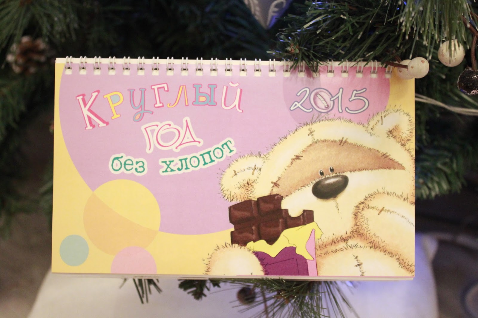 Еще там был вот такой веселый календарик. Теперь он живет на столе около компьютера)).