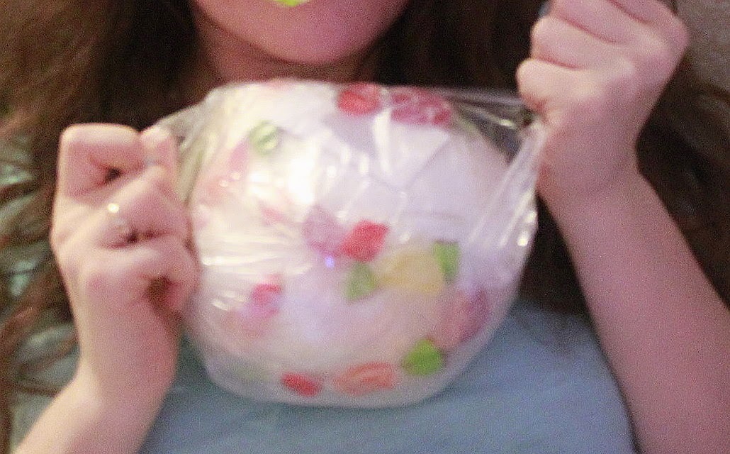 И ребенка ждала до часу ночи, пока я сладости сфотографирую, съела одну конфетку и пошла баи. Ну вы только посмотрите на эту довольную физиономию!