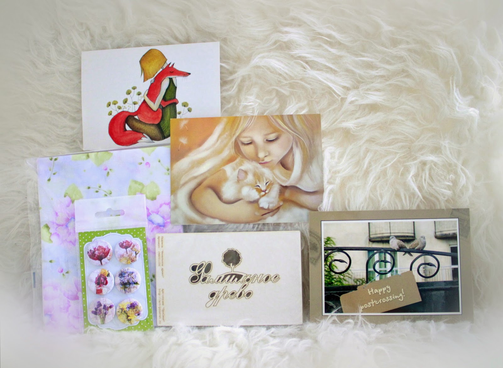 Еще на днях ко мне прилетели, аж целых две открытки и одна посылочка.