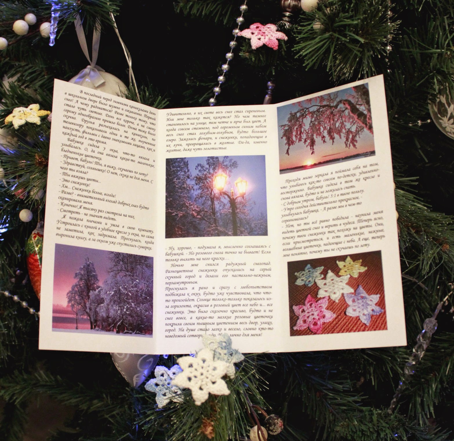 Вот моя супер-книга сказок, а вокруг на ёлочку упал снегопад из снежинок, который вскоре перелетит в мои скраповые хомячьи закрома.