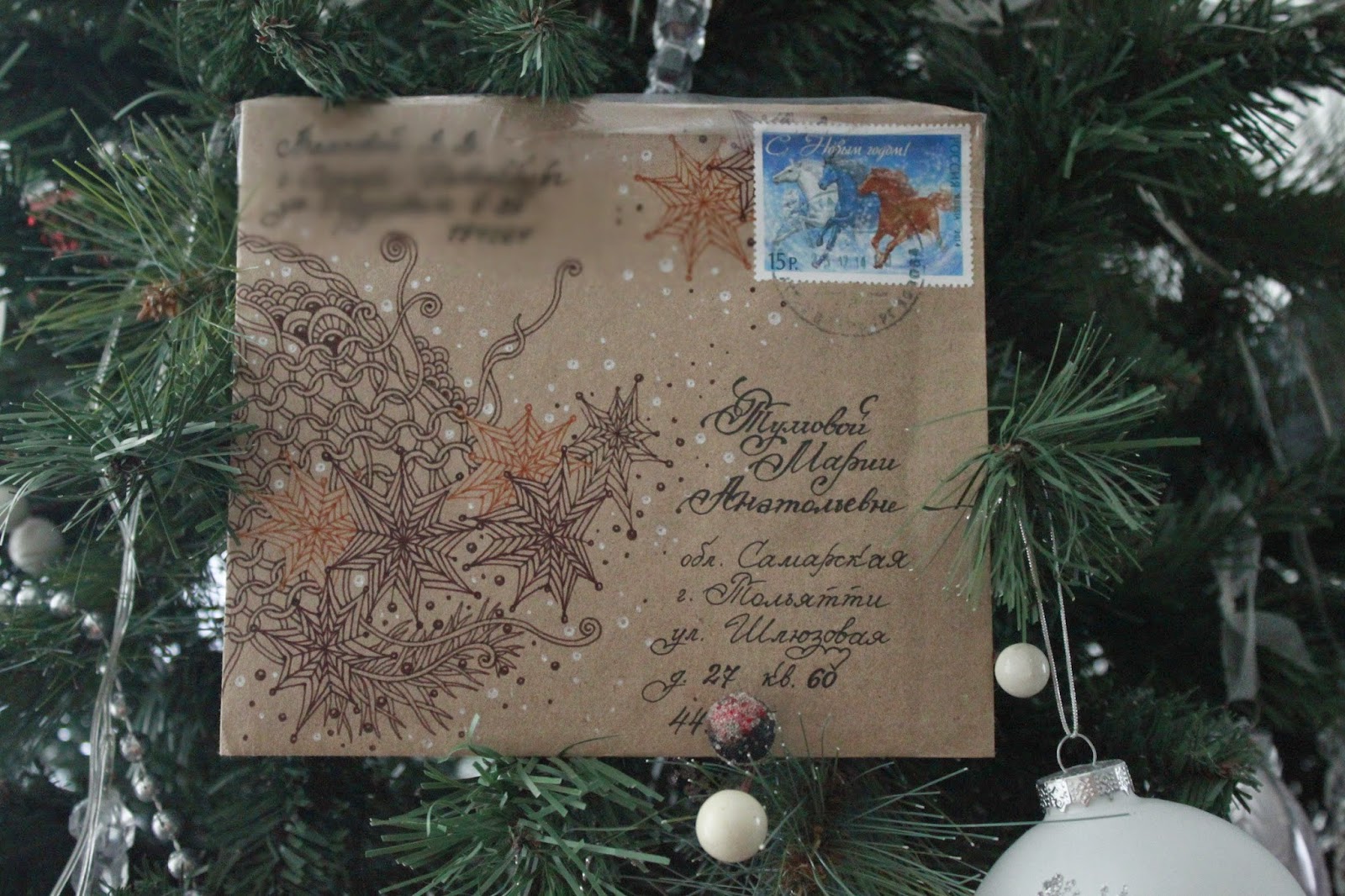 Первая открыточка была от Викуси (Melkota) из Питера. Конверт - это уже целое произведение искусств.
