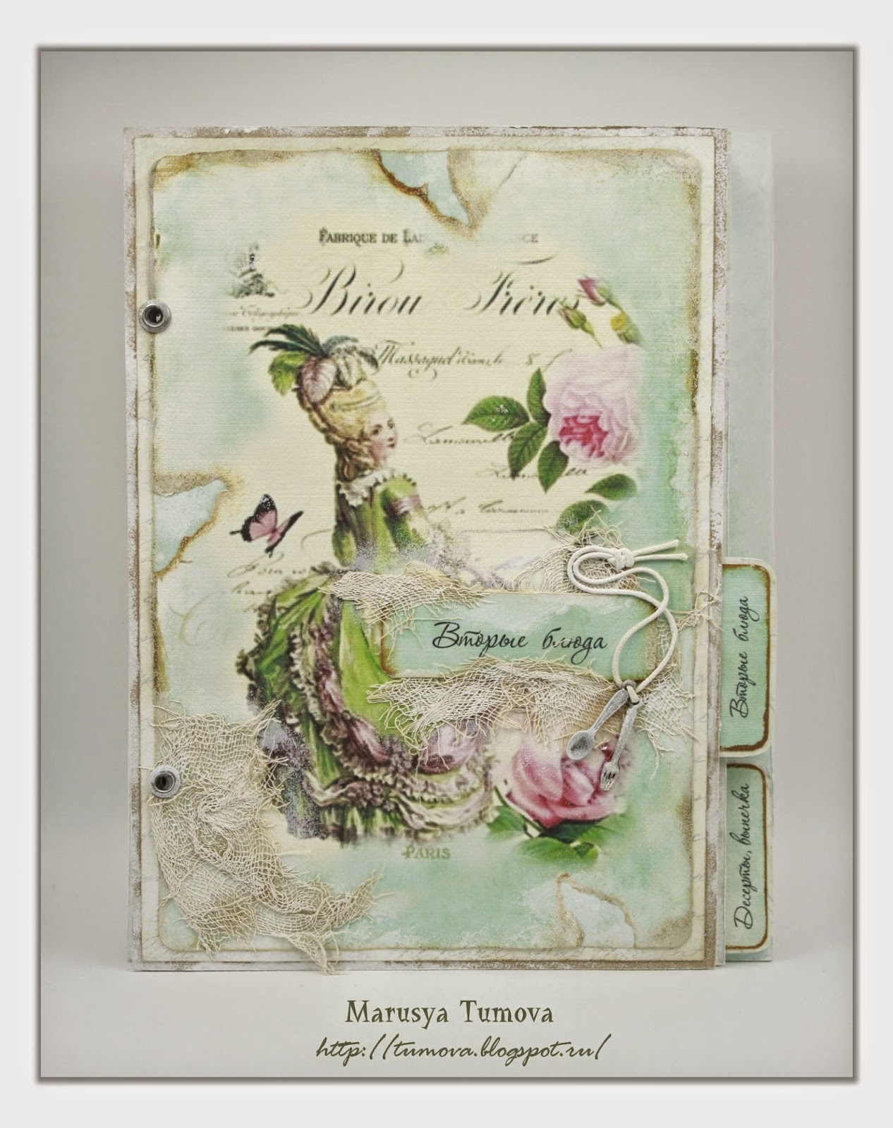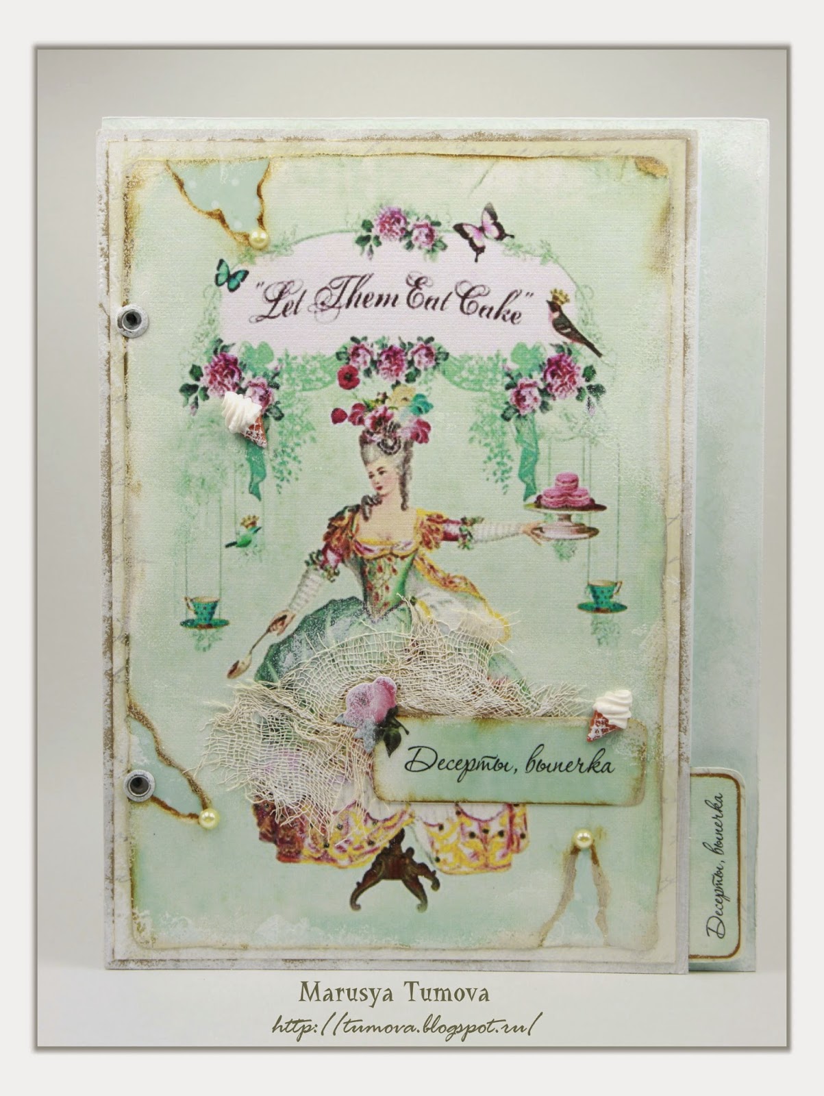 На днях мне выпала чудесная возможность выполнить один такой заказ от замечательного парня - кулинарную книгу. Я решила отойти от привычных баночек и ложечек, которые обычно используют для их создания. Мне хотелось наполнить ее, чем-то красивым и сказочным, чтоб девушка, которая будет готовить по рецептам из этой книги всегда чувствовала себя немножечко королевой, может даже французской! Поэтому создала кулинарную книгу в стиле Рококо, с иллюстрациями Марии-Антуанетты. И вот, что у меня получилось.