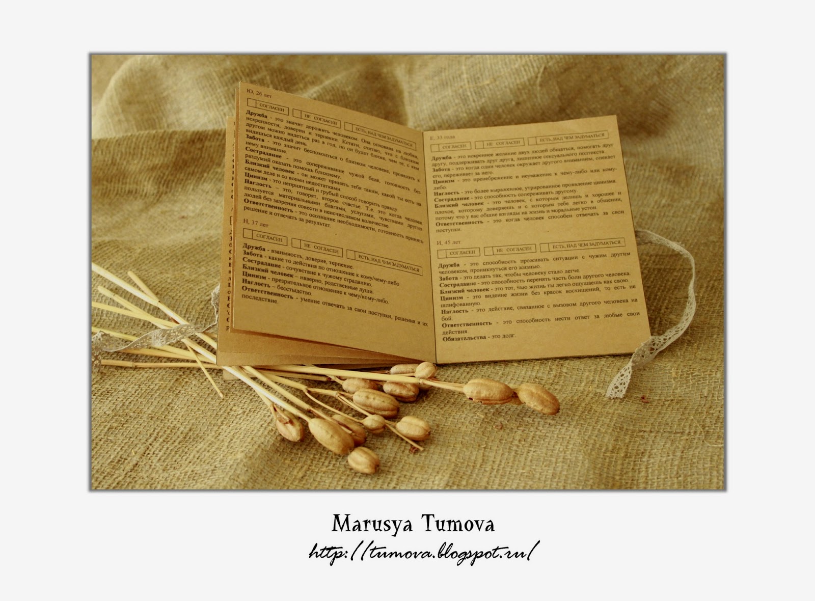 Идея вся и полностью ее, текст, рассуждения и сбор информации тоже – моя задача была лишь в воплощении ее идеи в жизнь. Подарок этот очень личный, индивидуальный, согласно случаю и по конкретной причине разногласия, поэтому в подробности вдаваться не буду, а просто покажу. А Вам желаю огромной дружбы, и берегите ее, ведь даже детская загадка гласит: «Что очень дорогое, но ничего не стоит, легко потерять, но сложно найти?»…