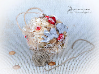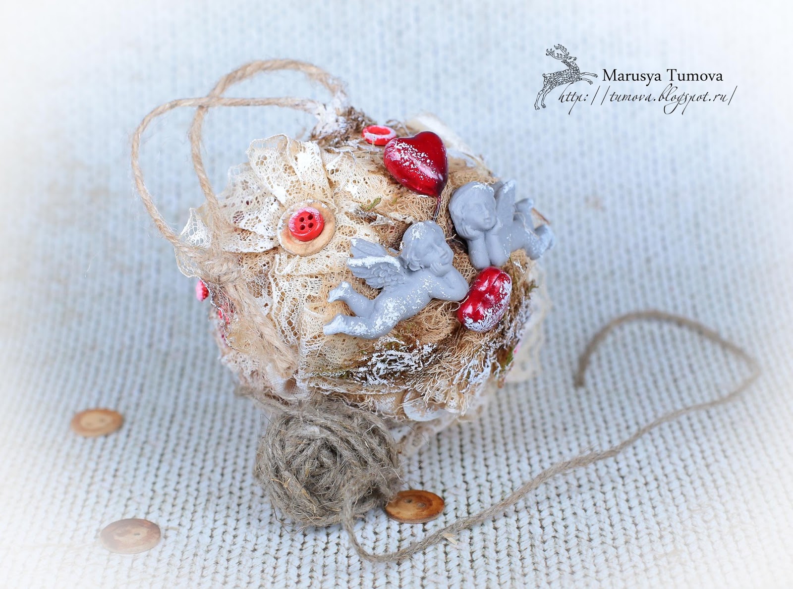 Сегодня хочу Вам показать еще один интерьерный шарик. Интерьерная игрушка хороша тем, что может украшать ваш дом круглый год и служить подарком на любой праздник. Данный шар "Охраняющие чувства", послужит хорошим подарком на приближающийся праздник 14 февраля - День Всех Влюбленных".