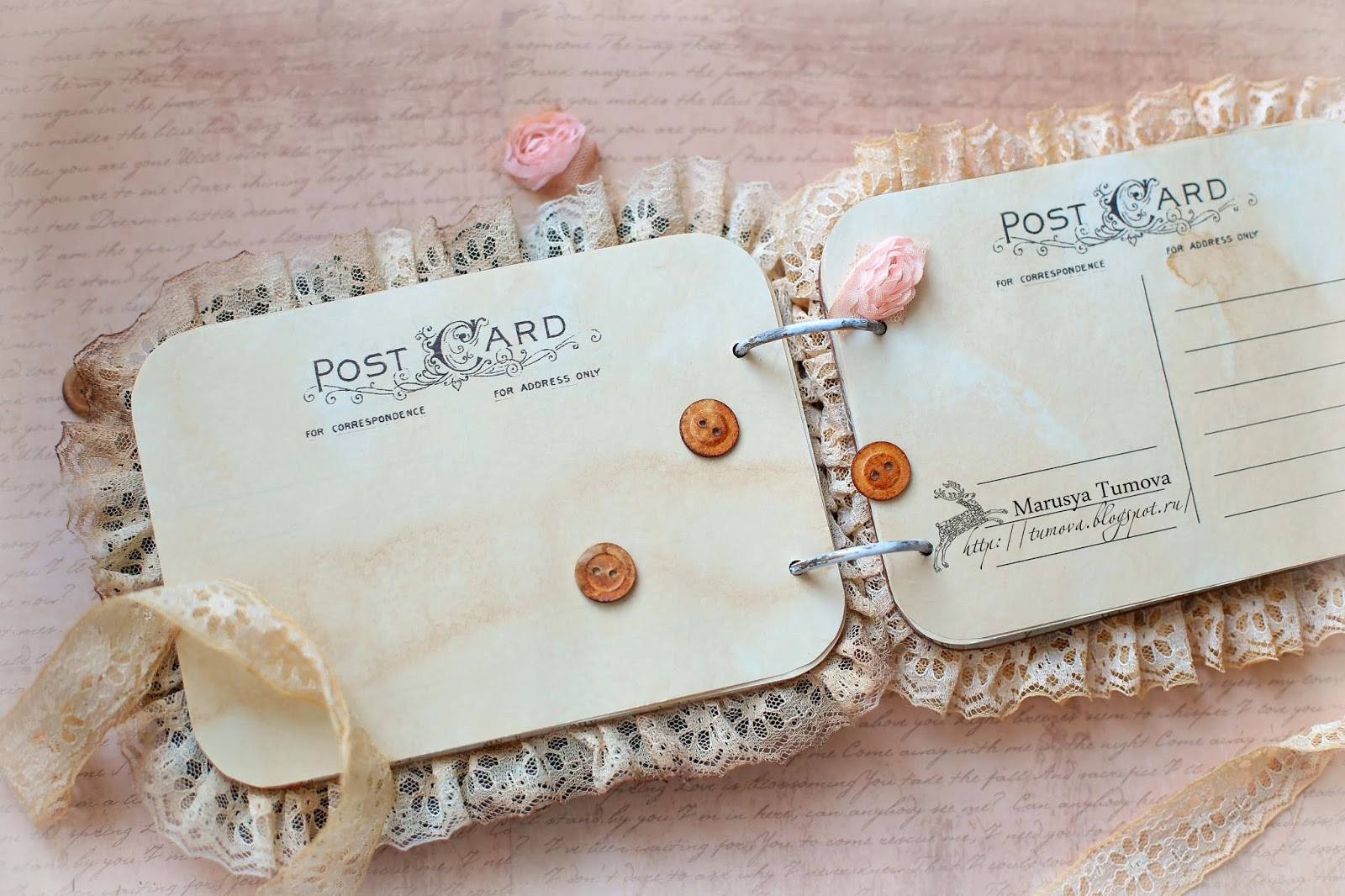 За окном морозно, а мне захотелось чего-то теплого и винтажного. К тому же давно уже в голове сидела мысль сделать необычный #блокнот для записи адресов моих друзей по рукоделии, да такую, что при необходимости отправить посылку, мне не приходилось нести всю адресную книгу с собой или в срочном порядке переписывать адрес.К тому же, бывает так, что приходят мне послания от незнакомых мне людей или я с человеком только познакомилась, но еще не успела запомнить его, но мы обмениваемся, например, чем-нибудь рукодельным. Так вот, хотелось бы, чтоб в этой адресной книги помимо адреса, псевдонима, содержалась краткая информация о данном человеке, чем увлекается, что любит, чем живет... вдруг мне захочется сделать сюрприз... Наполнение хотелось сделать тоже необычным и винтажно-открыточным, поэтому каждая страничка в виде #стариннойоткрытки.