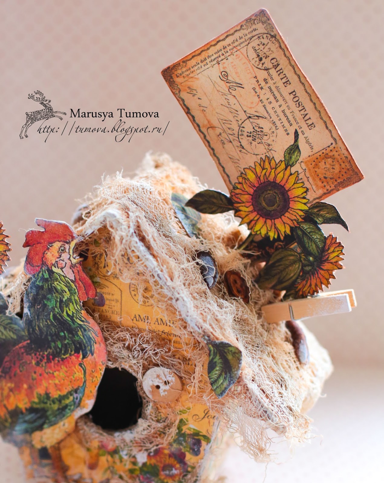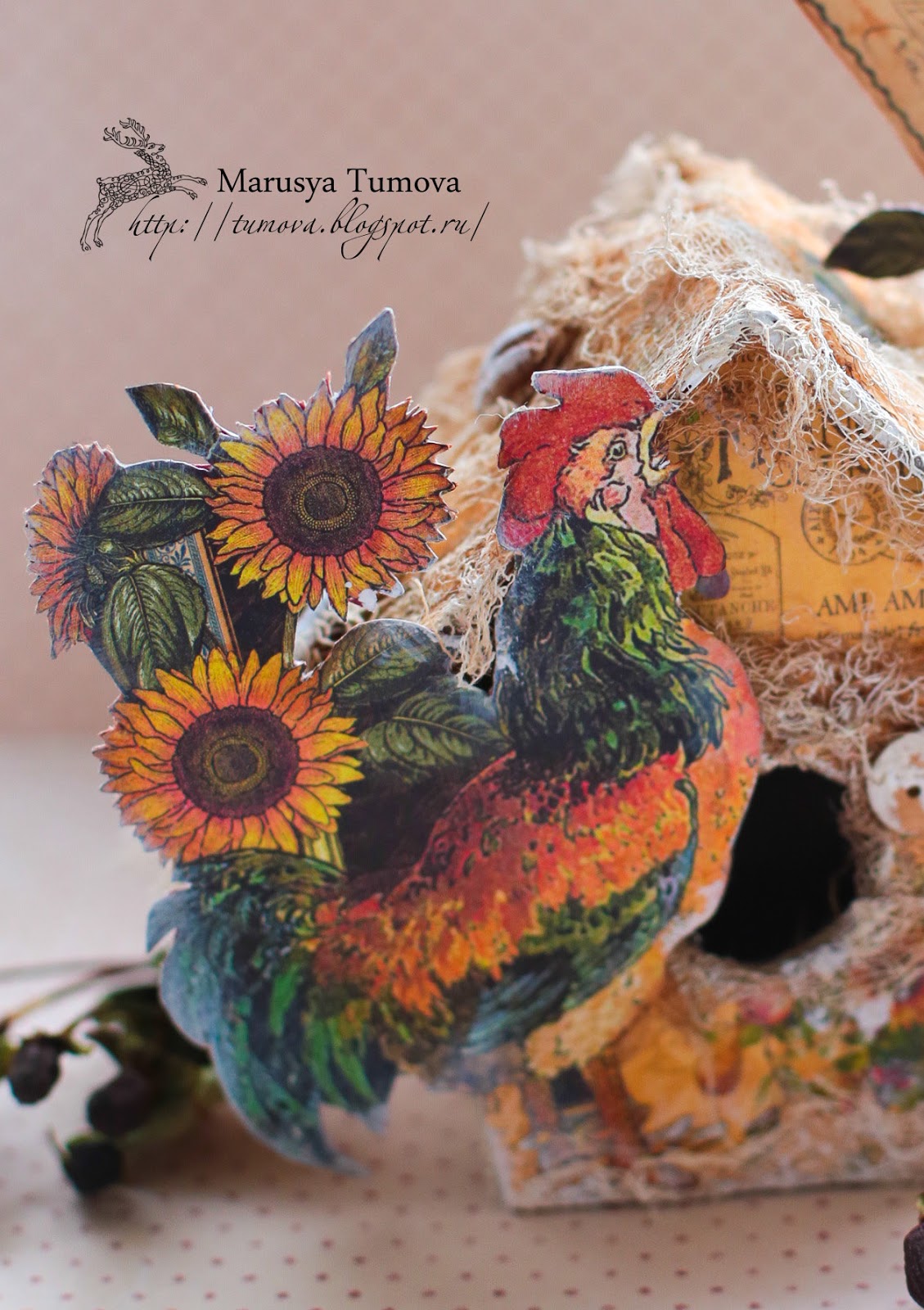 Совсем недавно я стала дизайнером блога ScrapMaster и в рамках первого задания нужно было сделать работу в Тебе "Народные мотивы". Поэтому я пошла от ассоциаций. Народные мотивы для меня это, как возвращение к прошлому, к нашим истоками, к чему-то простому, но очень родному и важному. Возможно, это и легло в основу моей работы - "Дом из бабушкиного сна". В ней мне хотелось передать все доброе, домашнее и такое теплое, что есть внутри каждого из нас...