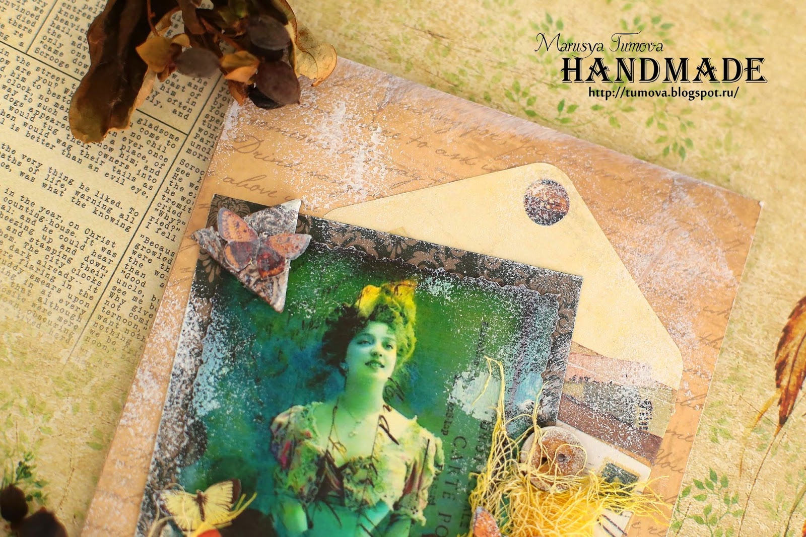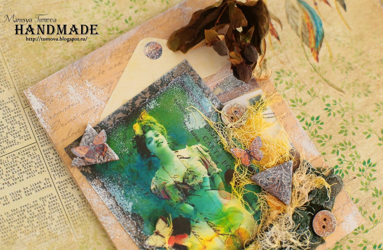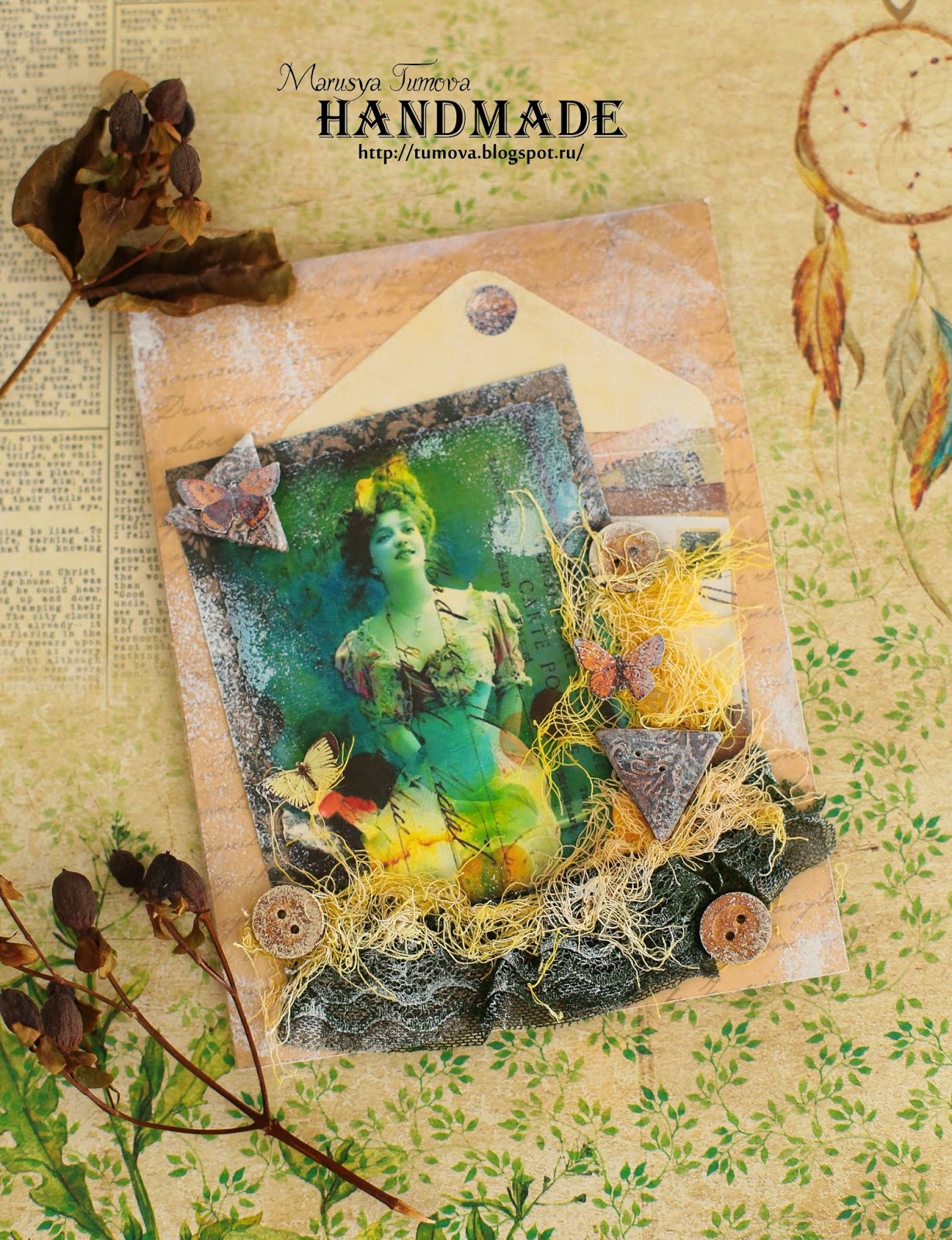 Картинка какая-то волшебная и в результате получилась очень нерельная открытка. Мне кажется, такая подойдет незаурядной женщине. Молодчина, Марусенька!)