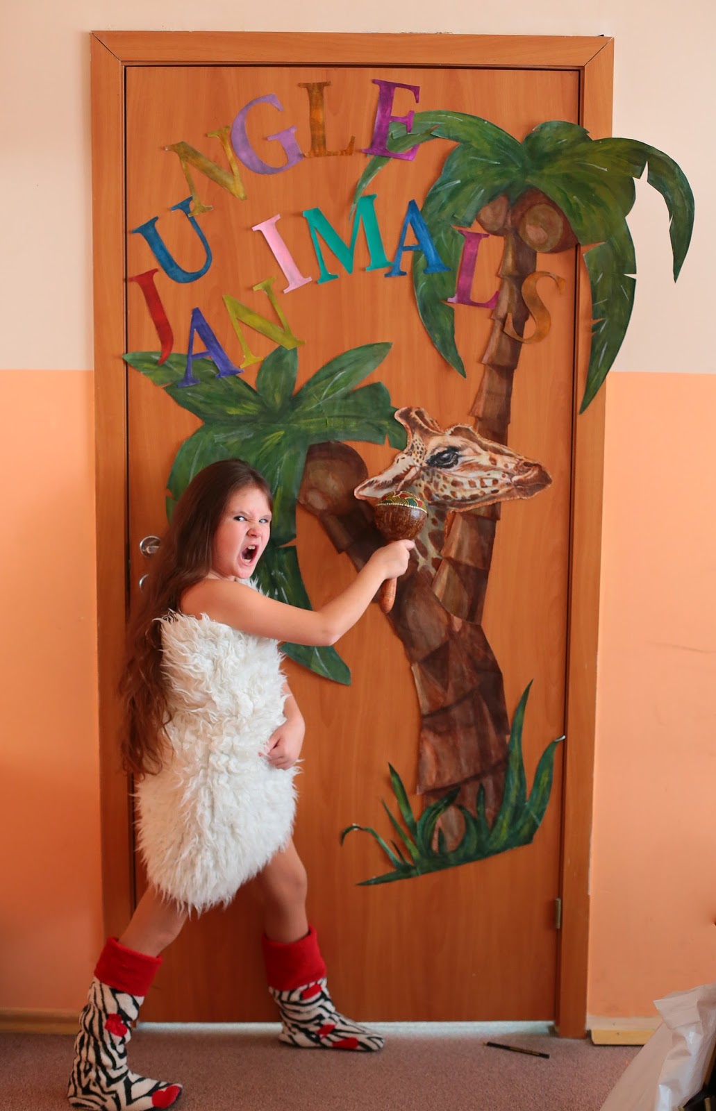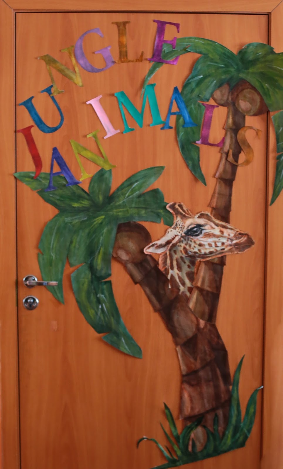 А этого жирафа с пальмами я всю ночь рисовала для оформления нашего класса.