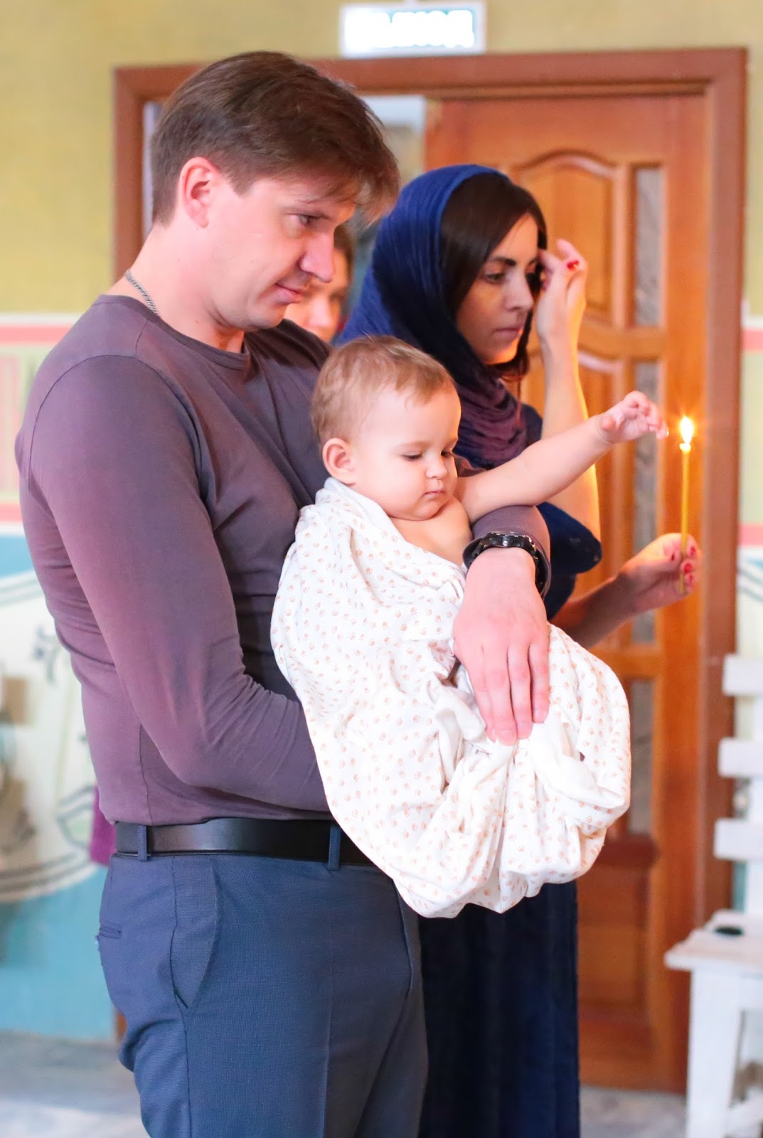 Кому что, а мелкой лишь бы поиграться с чем-то. Похоже она не совсем понимает какое таинство происходит.