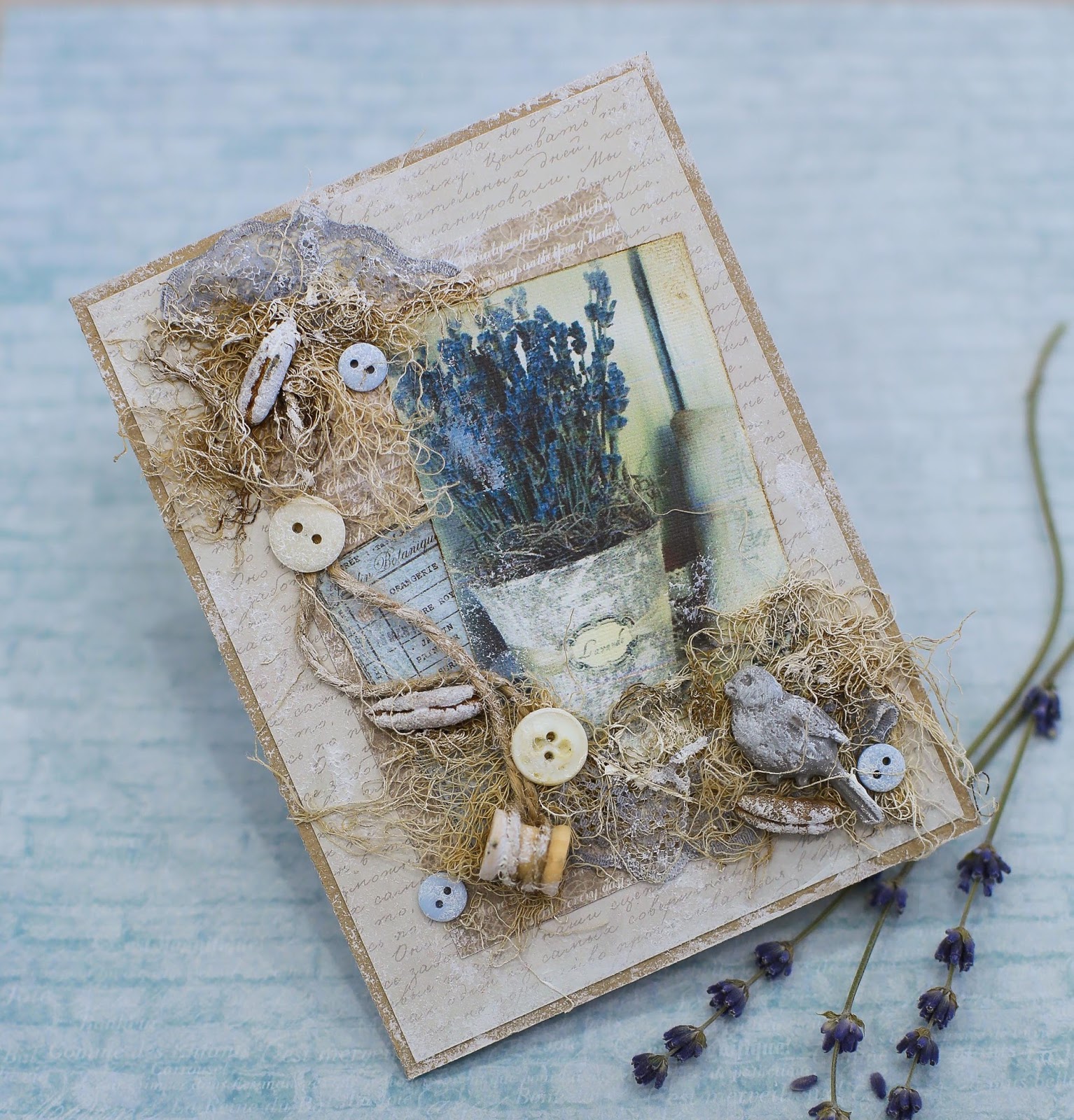 За окном уже снежок, а душа попросила чего-то душевного и провансового. Вот так родилась эта совсем не новогодняя открыточка с ароматом лаванды...