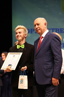 В то время когда они пели, на сцену уже стали подниматься первые ученики для вручения. Всего было три захода по двести с небольшим человек. Как только медалисты выстроились, на сцену пригласили нашего уважаемого губернатора и он начал свое длинное, вернее очень длинное выступление. Грустно то, что целых 30 минут он говорил все абсолютно одно и то же, как важно остаться в регионе и учиться и работать именно тут, единственным различием в ней были лишь примеры разных персон, которые работали или вернулись работать на свою малую Родину, где добились больших успехов и где их запомнили. На самом деле было очень жалко детей, мы то все это время сидели, а они стояли на сцене в свете прожекторов. И вот на 33 минуте выступления господина Меркушкина, девочка в белом, стоявшая на первой линии - падает в обморок. Ведущие молодцы конечно, хорошо вышли из ситуации. Волонтеры ребенка вывели, привели в чувства, а губернатор уже очень скоренько закончил свое выступление яркой фразой о том, что он обещает всем учащимся, кто не пройдет по конкурсу, но захочет остаться учиться в области, о том, что всем желающим он обеспечит бюджетные места. Зал после этого взорвался аплодисментами. Люди всегда верят в прекрасное. Я бы, возможно, тоже была бы в великом восторге, не знай множество случаев медалистов прошлых лет, кому захотелось принять такое же щедрое обещание главы регионы, но увы... Даже после написание нескольких прошений в его администрацию - не были услышаны. И это несколько некрасиво обещать то, что ты в конечном итоге не делаешь... Но не будем о грустном, будем мечтать и верить в порядочность людей и в то, что их слова чего-то стоят...