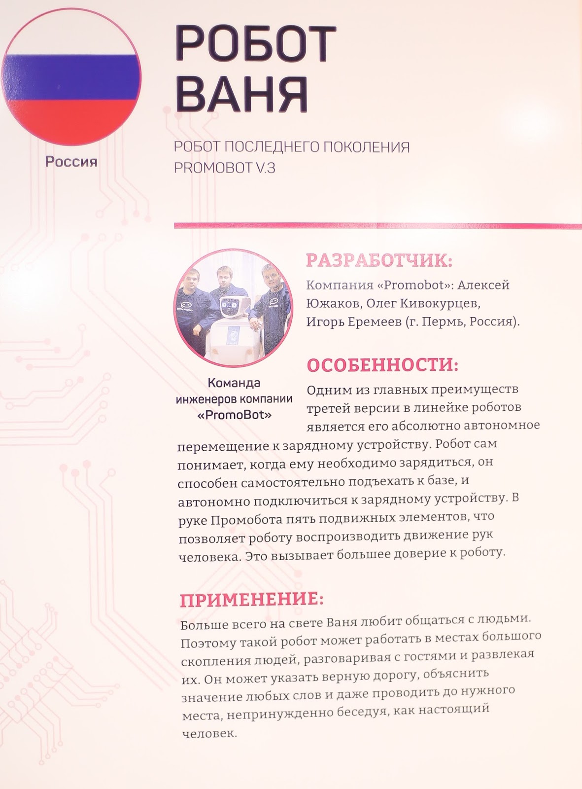 В июле в нашем городе проходила замечательная выставка роботов. Мне с детьми удалось посетить сие событие. Планировали быстренько пробежаться, но задержались почти на 3-и часа. Сколько различных роботов и приборов мы посмотрели и протестировали. Никогда не думала, что меня настолько увлекают новые технологии искусственный интеллект. Получили море эмоций, вдохновения и гордость за страну. Ведь среди огромного количества техники, роботы нашего производства были самыми глобальными и увлекали своими масштабами. Управление приборами при помощи силы мысли, игры, 3d принтеры, кинопрототипы, роботы от самых маленьких и незначительных, до самых невероятных и больших. Все это увлекает и манит, а ты с первых минут посещения выставки попадаешь в необыкновенный и увлекательный мир. Совсем другой, за гранью привычного...